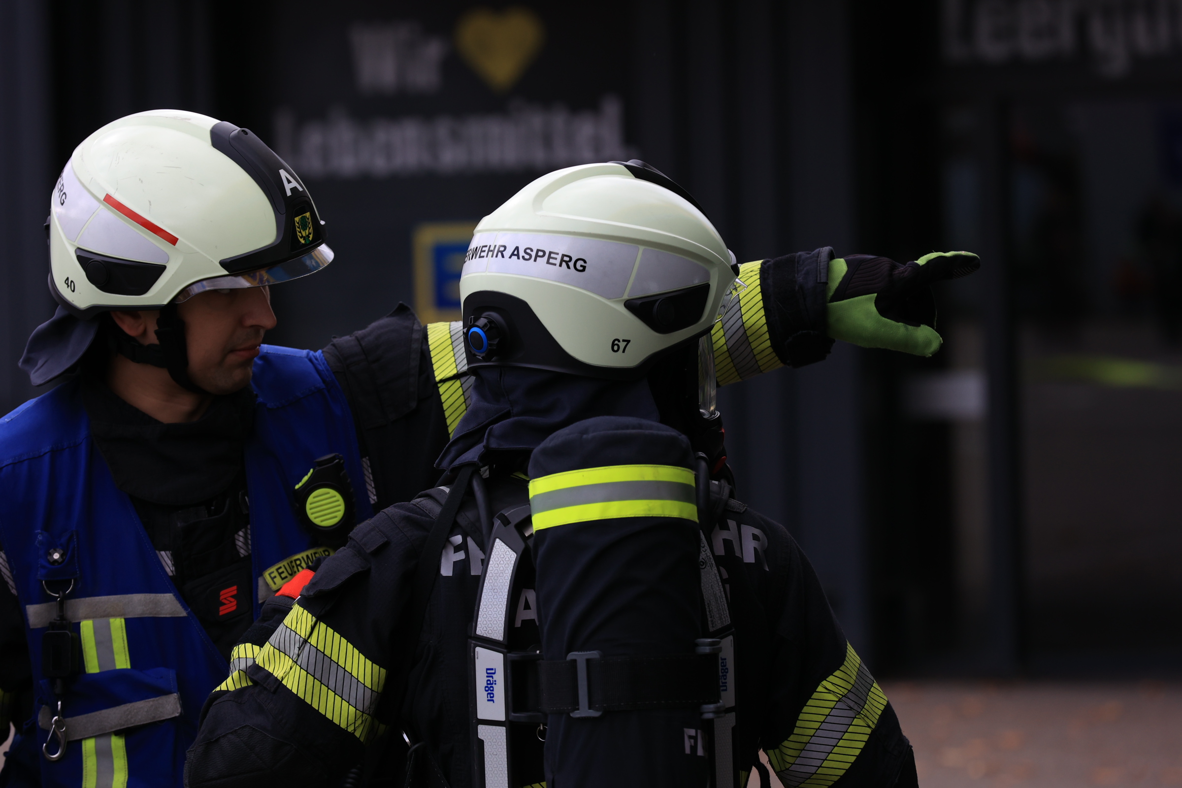 Angenommen wurde ein Brand auf dem Dach des Edeka-Supermarkts in der Ruhrstraße. Dichter Rauch drang aus dem Dachbereich, mehrere Personen galten als vermisst. Die Einsatzkräfte gingen sowohl im Innen- als auch im Außenangriff vor, um den Brand zu bekämpfen und die Menschenrettung einzuleiten.