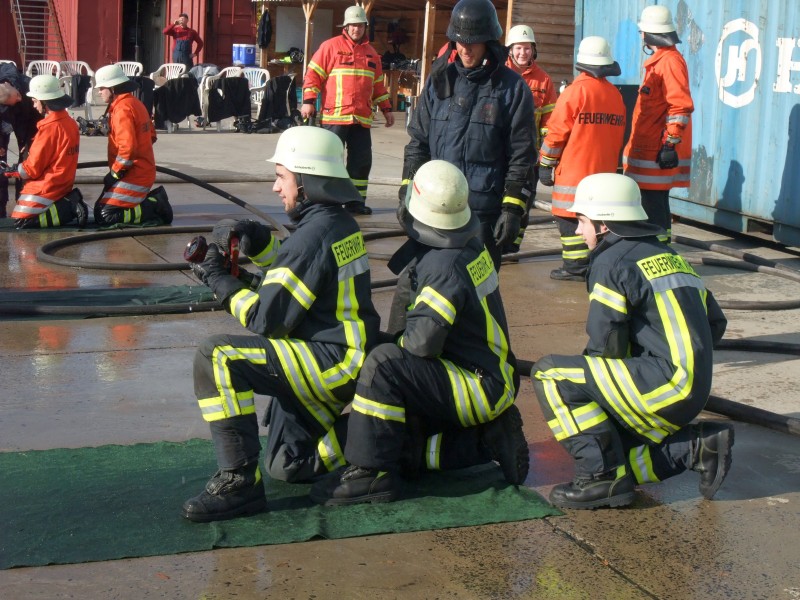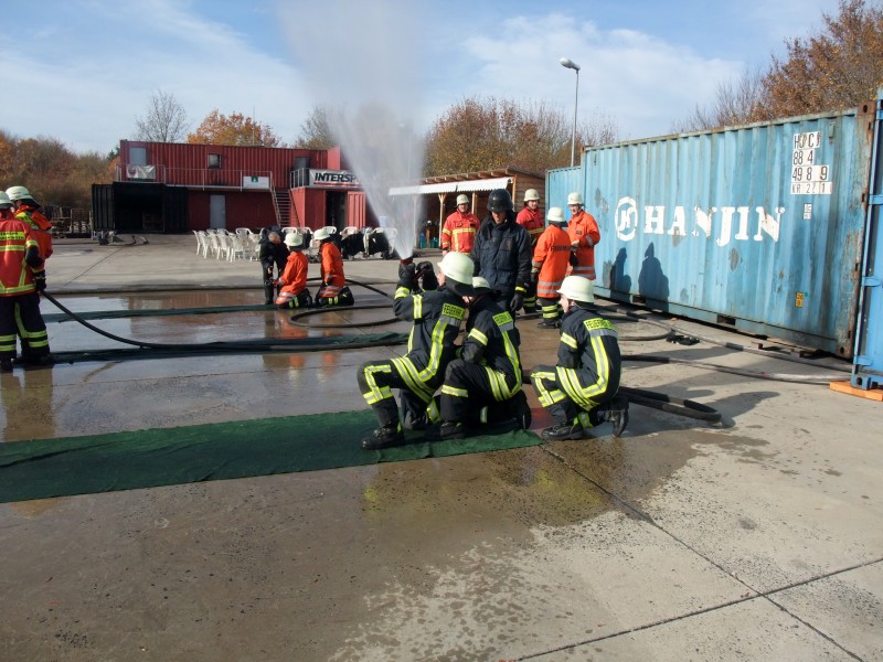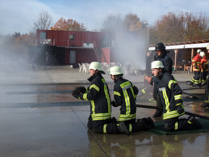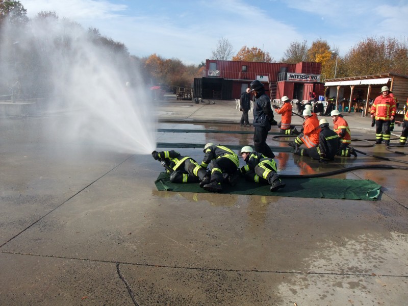 Anschließend folgte eine Trainingseinheit mit dem Ziel, den Teilnehmern die korrekte Führung mit dem Strahlrohr zu vermitteln.