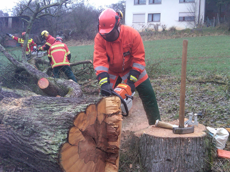 Dort wurde erst in der Theorie und später auch in der Praxis der Umgang mit verschiedenen Kettensägen beigebracht. Zusammen mit Kameraden aus Markgröningen, Hardt- und Schönbühlhof sowie Oberriexingen übten die Lehrgangsteilnehmer das sichere Zersägen von Bäumen bzw. Ästen. Erfolgreich bestanden haben die Kameraden Andreas Bäuerle, Florian Mezger sowie Christopher Pach.