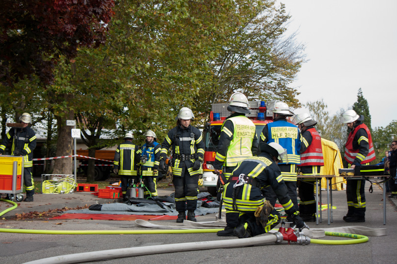 Die Freiwillige Feuerwehr Asperg zeigte bei der diesjährigen Jahreshauptübung am 13.10.2012 für die Bevölkerung einen Gefahrguteinsatz. Alarmiert wurde über Funkmeldeempfänger das Einsatzstichwort G3 - Gefahrgut groß. In der Asperger Lehrschwimmhalle hatte der Hausmeister beim Wechseln der Chlorgasflasche vergessen, diese ordentlich zu verschließen, weshalb im Anschluss Chlorgase entwichen.