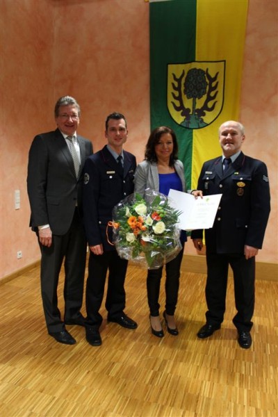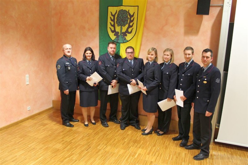 Aufgrund der Leistung und nach Erfüllung der notwendigen Lehrgänge wurden an diesem Abend Michael Ruff, Daniel Beck und Robin Müller zum „Feuerwehrmann" befördert. „Feuerwehrfrau" wurden Kerstin Wahl und Cathrin Nolte. Zur „Oberfeuerwehrfrau" wurde Claudia Class befördert.