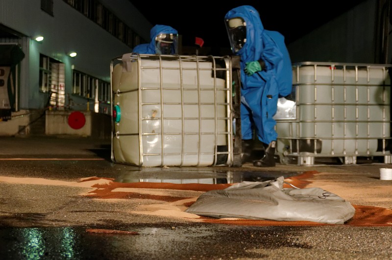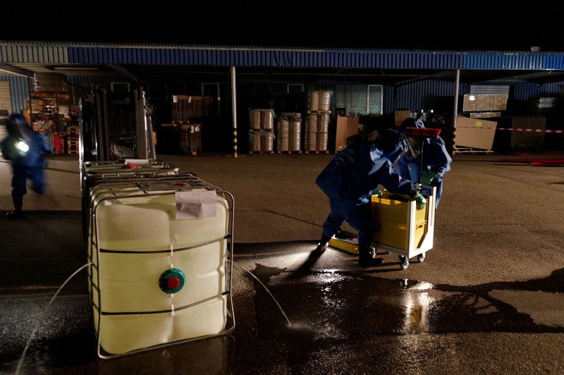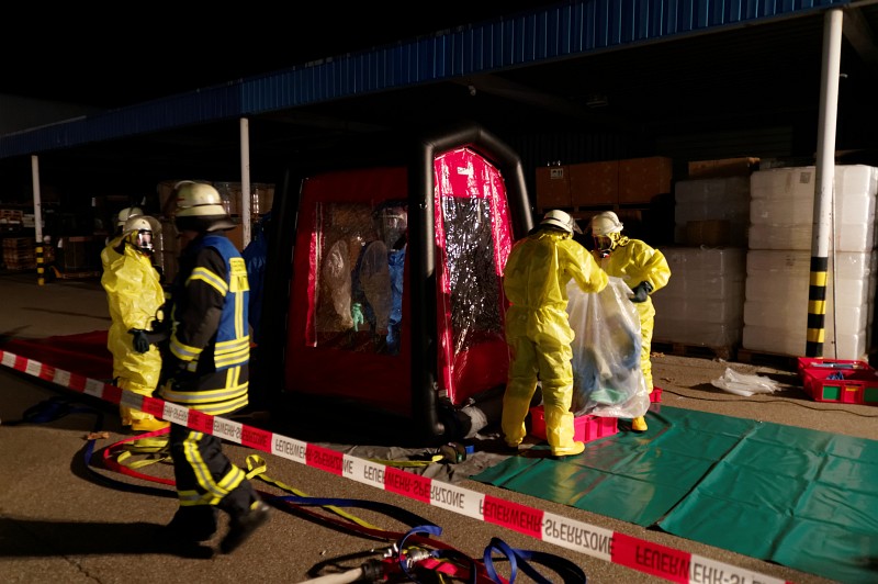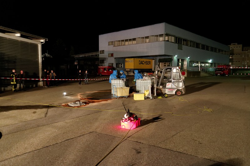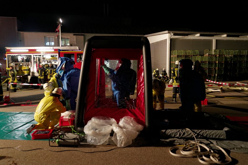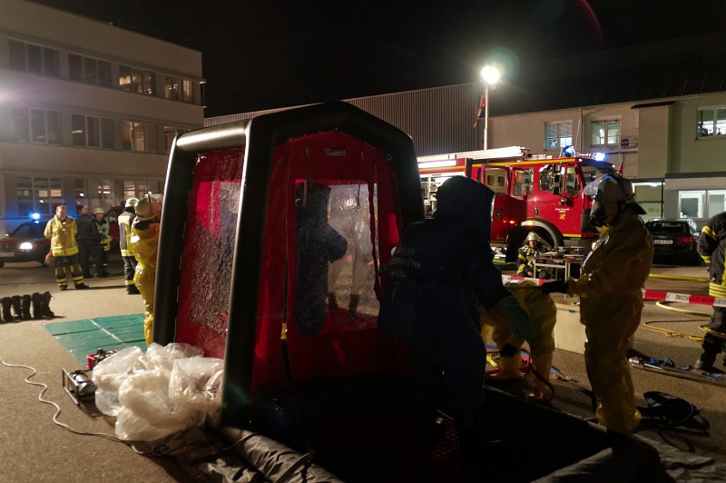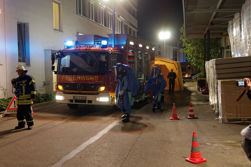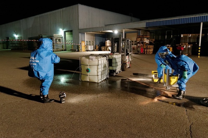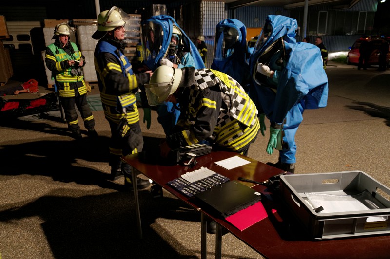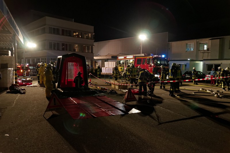 Der Gefahrstoffzug der Feuerwehr Asperg übt regelmäßig mit Feuerwehren aus dem Landkreis Ludwigsburg, um eine funktionierende Zusammenarbeit im Ernstfall zu gewährleisten.