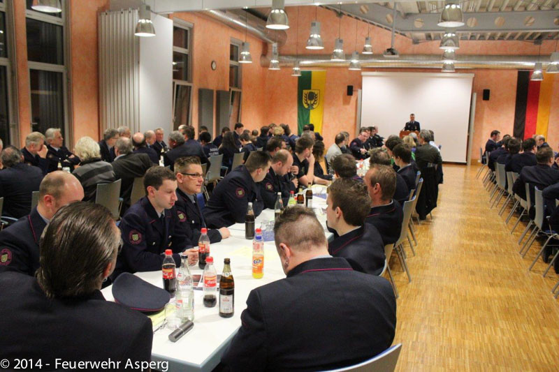 Am Samstag, den 11. Januar 2014 fand die Hauptversammlung der Freiwilligen Feuerwehr Asperg statt. Kommandant Stefan Fritz konnte unter den 124 Anwesenden, Bürgermeister Ulrich Storer, den Leiter des Haupt- und Ordnungsamtes Volker Gramlich, Mitglieder des Gemeinderats, Kreisbrandmeister Andy Dorroch, den stellvertretenden Kreisfeuerwehrverbandsvorsitzenden Markus Giek, Kreisjugendfeuerwehrwart Michael Neubauer und Vertreter des Polizeiposten Asperg begrüßen.