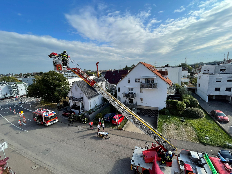 Fahrzeugaufgebot   Kommandowagen (KdoW)  Einsatzleitwagen (ELW 1)  Hilfeleistungslöschgruppenfahrzeug 1 (HLF 1)  Drehleiter (DLK 23/12)