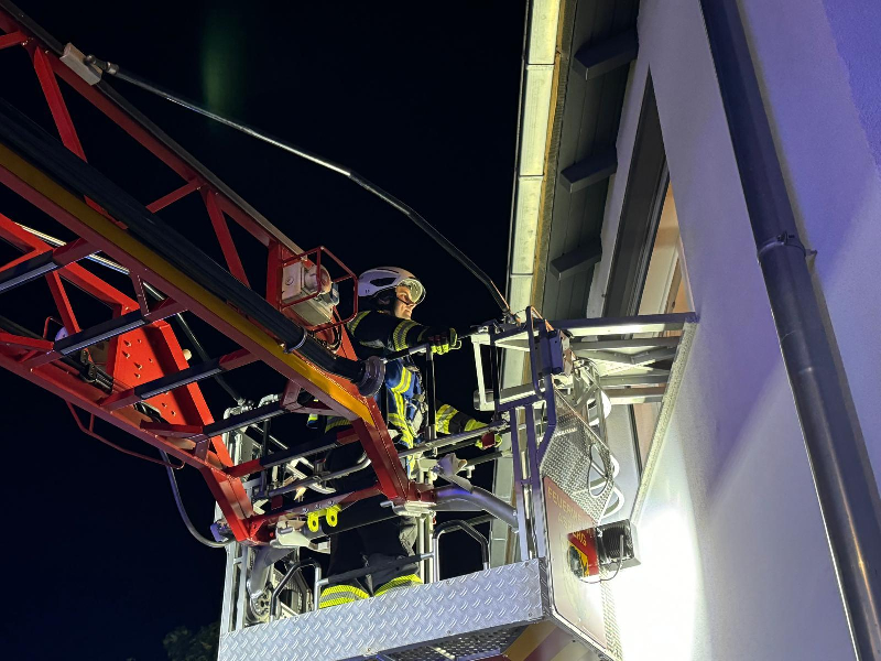 Fahrzeugaufgebot   Kommandowagen (KdoW)  Einsatzleitwagen (ELW 1)  Hilfeleistungslöschgruppenfahrzeug 1 (HLF 1)  Drehleiter (DLK 23/12)