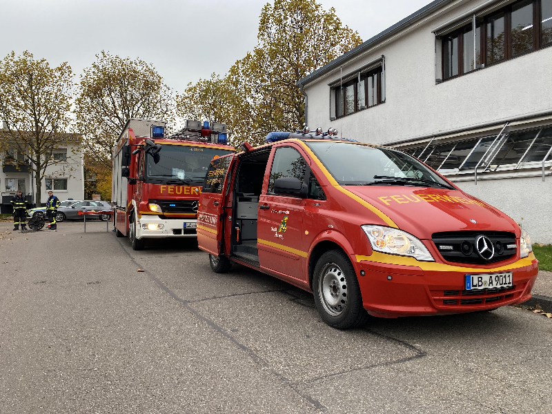 Fahrzeugaufgebot   Kommandowagen (KdoW)  Einsatzleitwagen (ELW 1)  Hilfeleistungslöschgruppenfahrzeug 2 (HLF 2)  Kleineinsatzfahrzeug (KEF)  Gerätewagen Gefahrgut (GW-G)