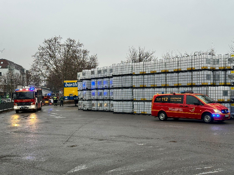 Fahrzeugaufgebot   Einsatzleitwagen (ELW 1)  Hilfeleistungslöschgruppenfahrzeug 1 (HLF 1)  Hilfeleistungslöschgruppenfahrzeug 2 (HLF 2)  Drehleiter (DLK 23/12)  Gerätewagen Transport (GW-T)  Anhänger mit Sonderlöschmittel