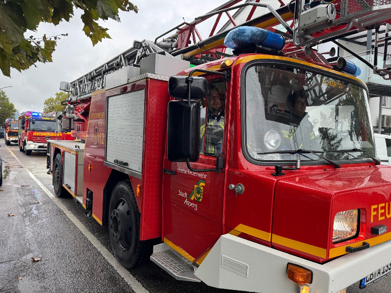 Fahrzeugaufgebot   Kommandowagen (KdoW)  Einsatzleitwagen (ELW 1)  Hilfeleistungslöschgruppenfahrzeug 1 (HLF 1)  Hilfeleistungslöschgruppenfahrzeug 3 (HLF 3)  Drehleiter (DLK 23/12)
