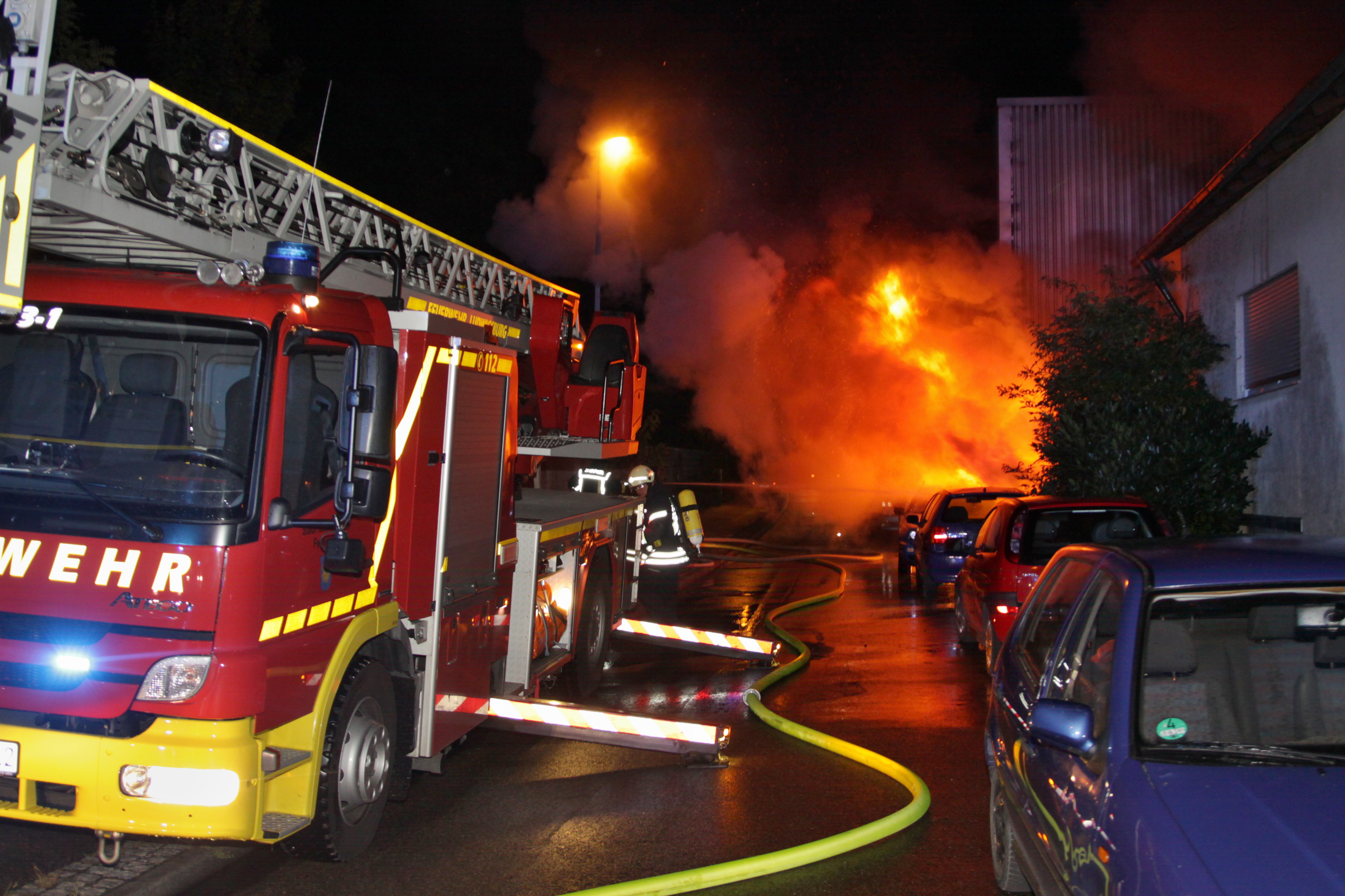 Datum: 12. August 2016 um 1:48 UhrAlarmierungsart: FunkmeldeempfängerEinsatzart: Brand > B5 – GroßbrandEinsatzort: Möglingen – Daimlerstraße