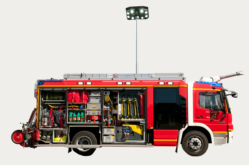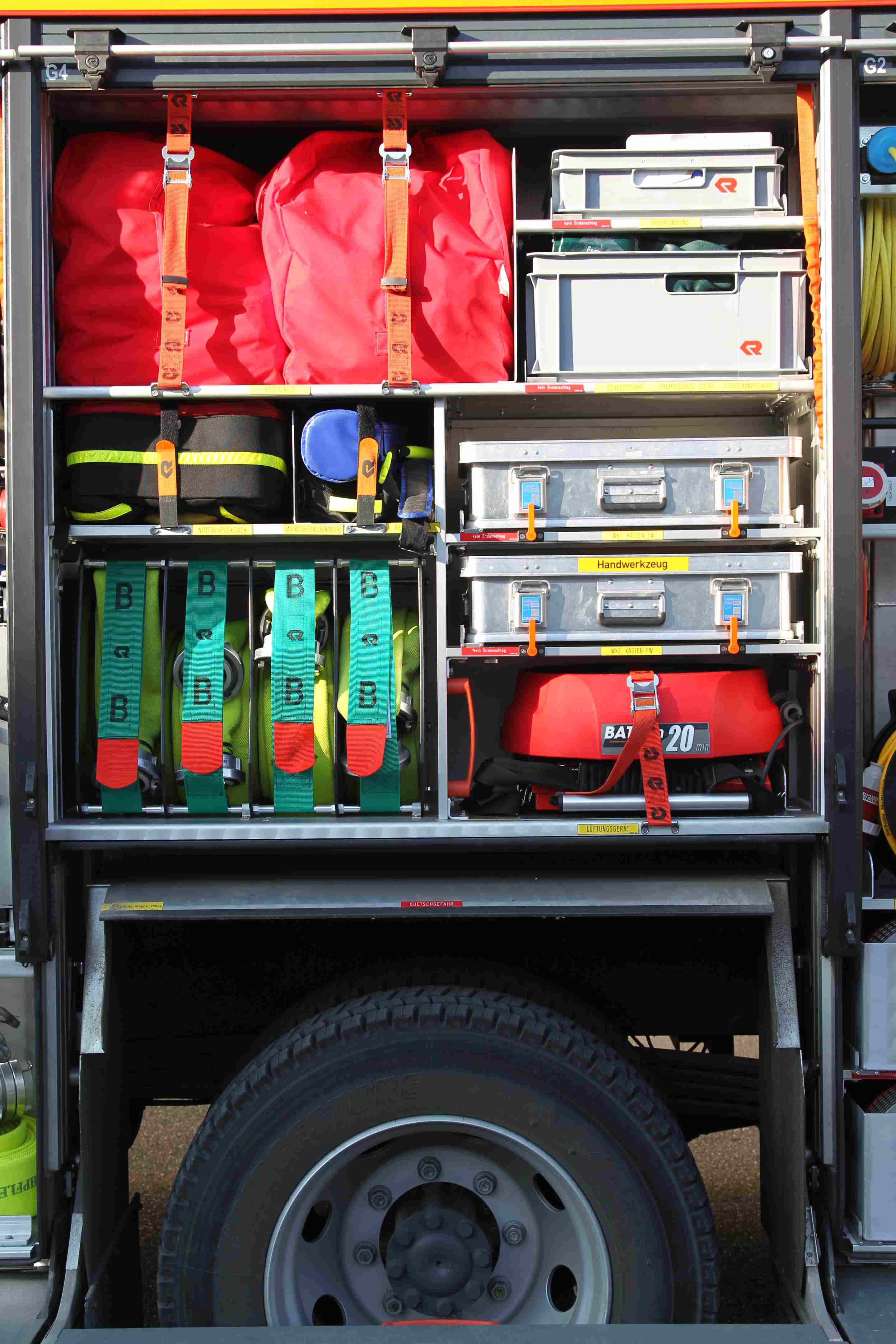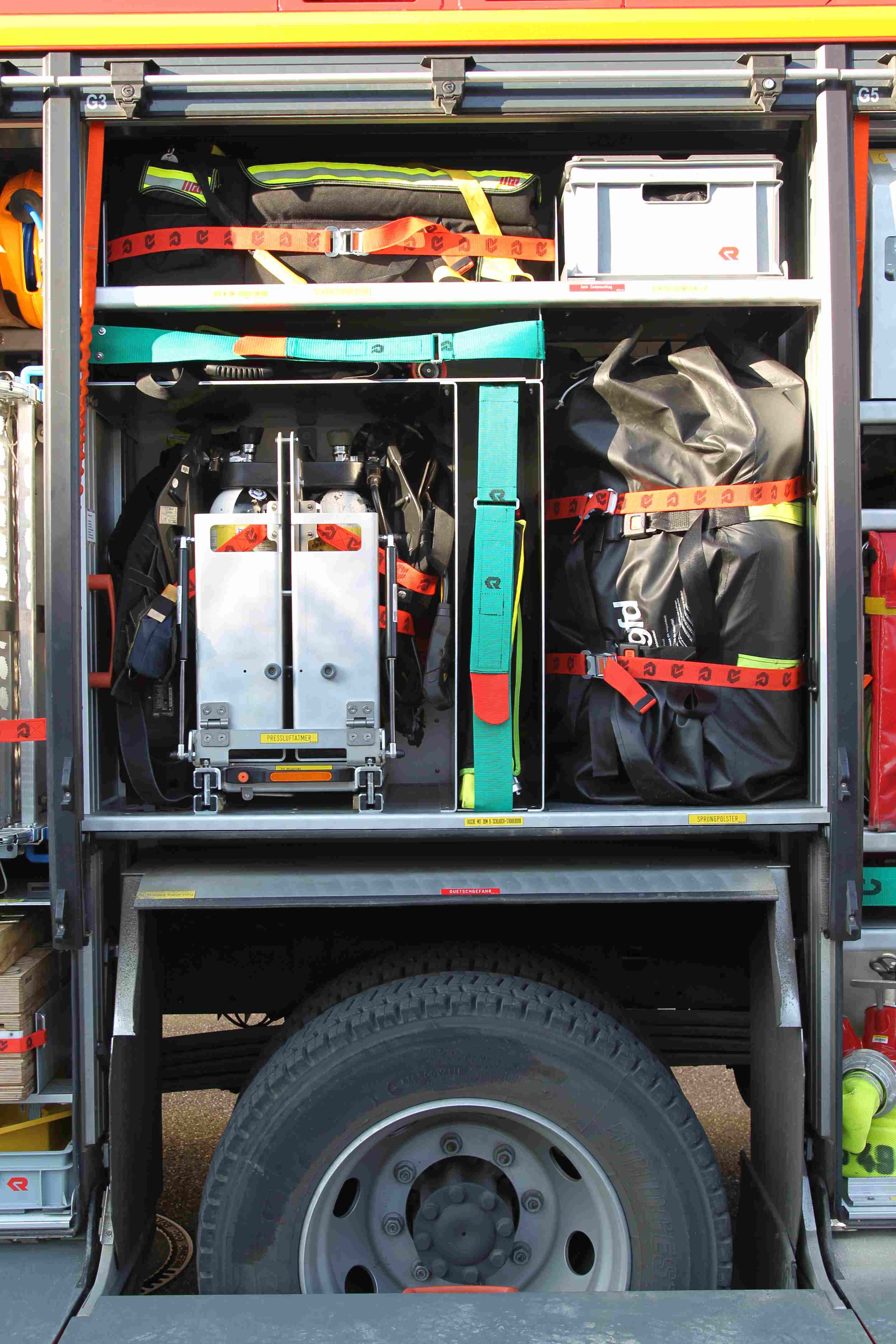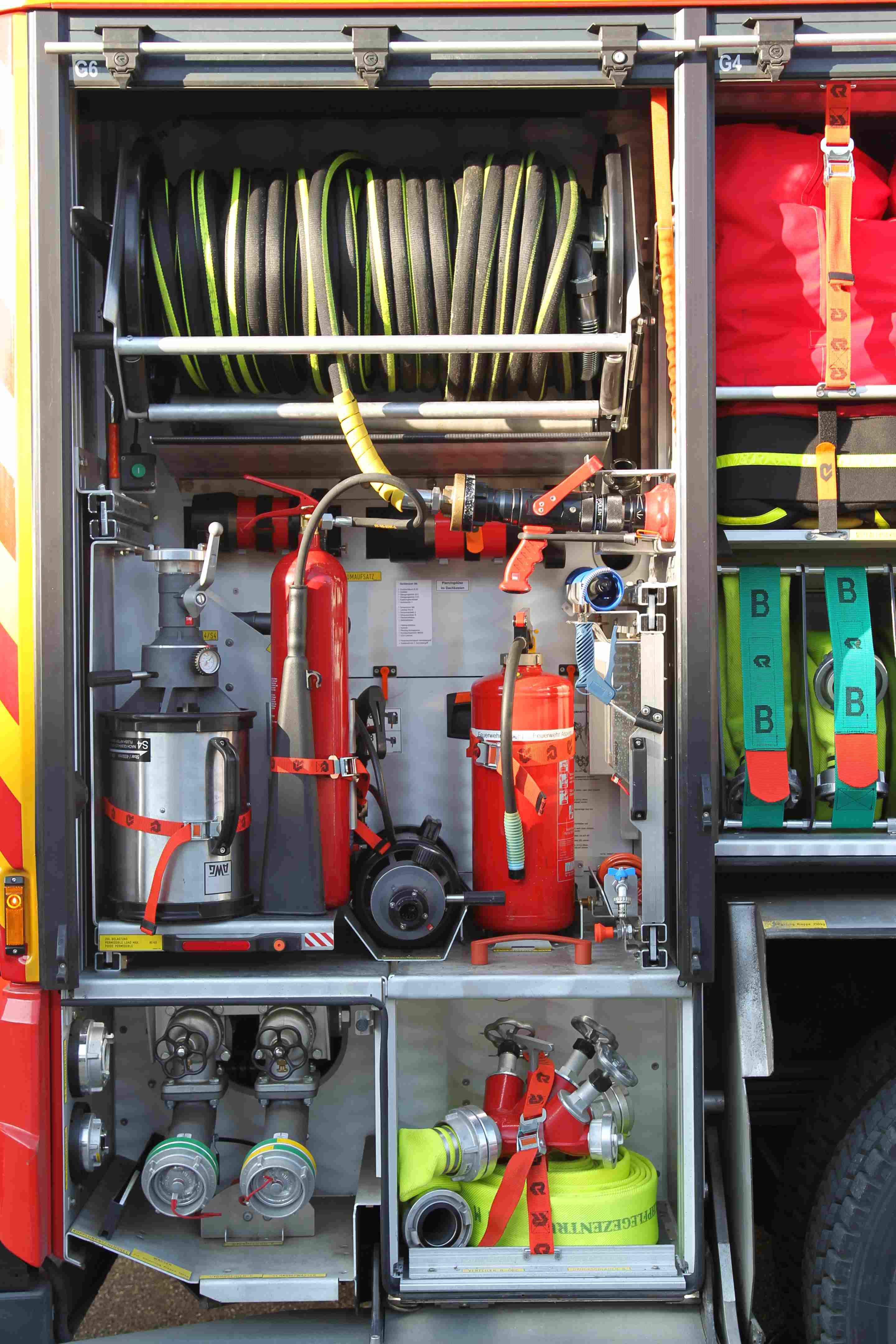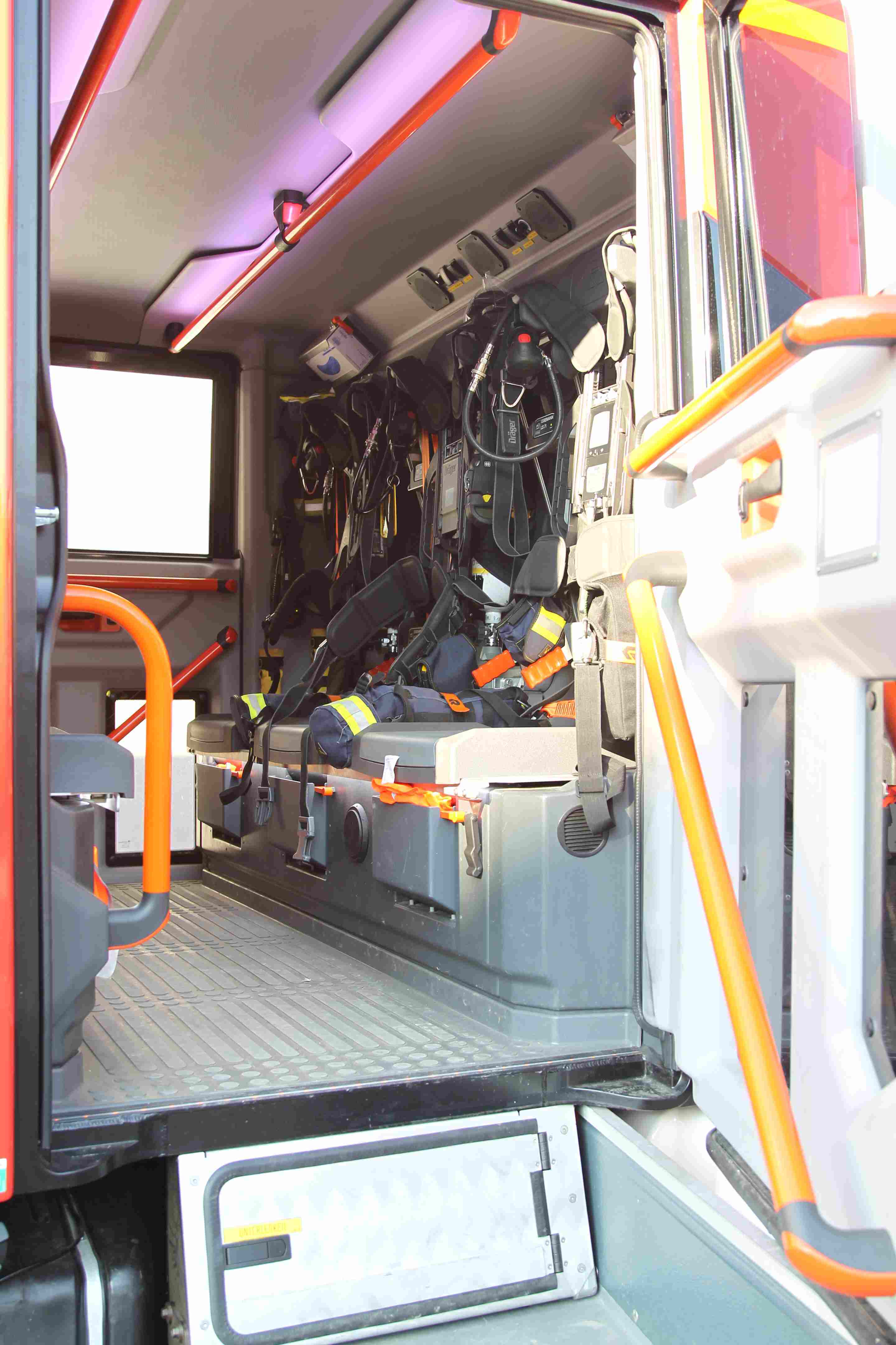 - sieben Atemschutzgeräte, davon fünf im Mannschaftsraum