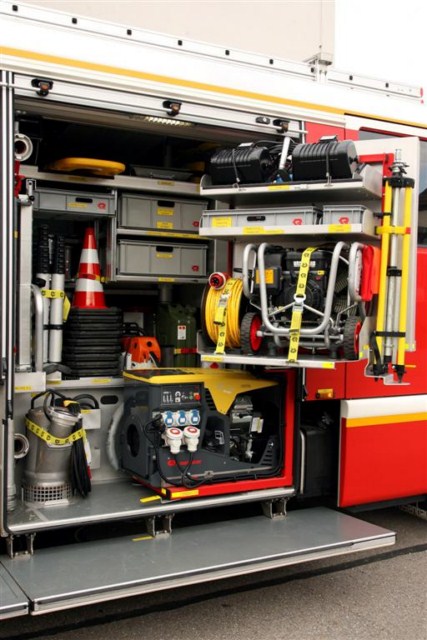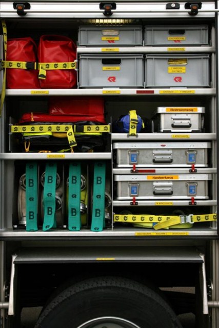 - sieben Atemschutzgeräte, davon fünf im Mannschaftsraum