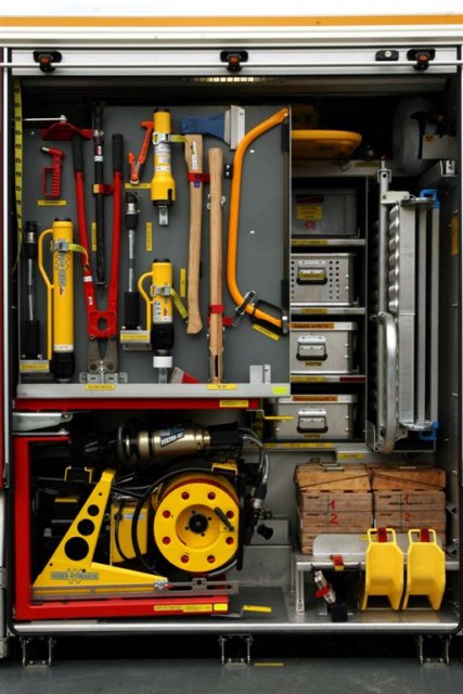 - Hydraulisches Rettungsgerät: Schneidgerät, Spreizer, zwei hydraulische Rettungsteleskopzylinder, Pedalschneider