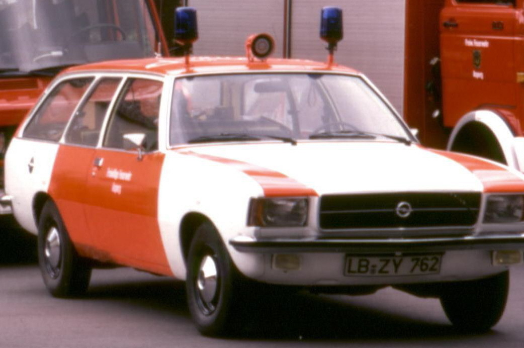 2. Kommandowagen (Opel) Nachdem der alte ELW keinen TÜV mehr bekam wurde schnellstens Ersatz gesucht und so kam der Opel Record Caravan. Dieser war bis 1984 im Einsatz.
