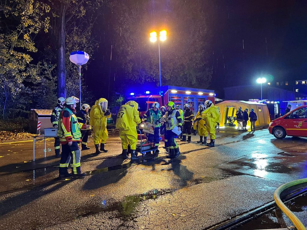 Unter Chemikalienschutzanzügen dichteten die Spezialkräfte aus Asperg die Leckage ab und konnten dadurch den Austritt stoppen.