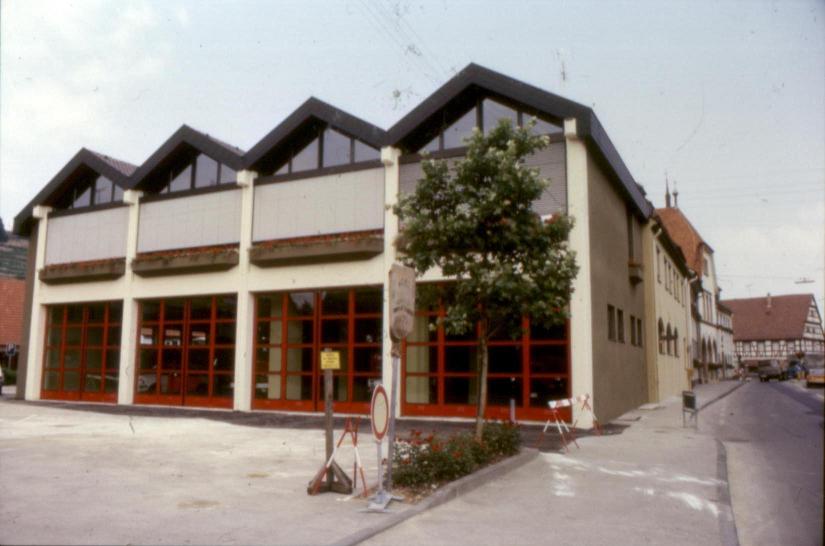 Im März 1938 wurde beschlossen, die der Stadt gehörenden Gebäude 8 und 8a an der Markgröninger Straße abzureißen und ein Feuerwehrmagazin zu bauen. Das Geld wurde aus einem Guthaben bei der Kreissparkasse und aus Erlösen der abgetretenen Gemeindegrundstücke für die Reichsautobahn bezogen. Das Gebäude sollte des Weiteren drei Dienstwohnungen beinhalten. Die Kosten beliefen sich auf ca. 45 500 RM.