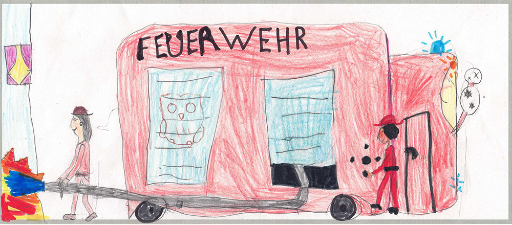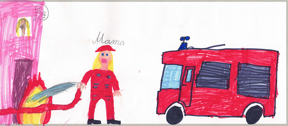 Ziel des Malwettbewerbs war, dass die Kinder ihre Mama oder ihren Papa als Feuerwehrfrau oder Feuerwehrmann zusammen mit einem unserer Fahrzeuge malen sollten.