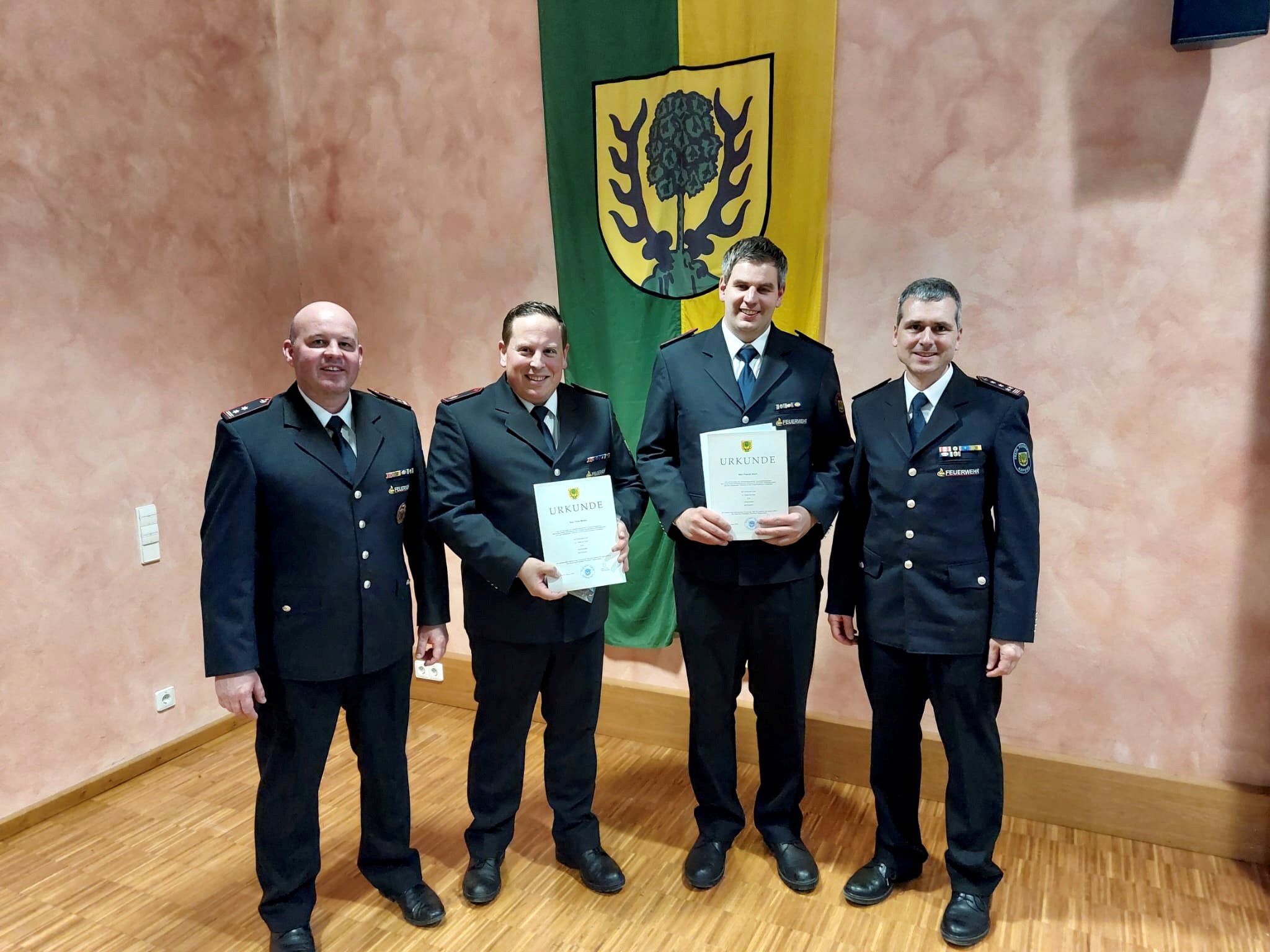 Aufgrund der Leistung und nach Erfüllung der notwendigen Lehrgänge wurden Sebastian Priwitzer, Arved Bröde, Samuel Bökle und Leon-Brian Maier zum Feuerwehrmann befördert. Tanja Büttner und Kim Büttner wurden Feuerwehrfrau. Anja Hoch, und Denise Rössler wurden zur Oberfeuerwehrfrau, sowie Sascha Löckle, Gerhard Kuch, Martin Ramelsberger, Felix Kaiser, Jesse Ceruso, Marcel Edelmann und Robin Büttner zum Oberfeuerwehrmann befördert. Hauptfeuerwehrfrau ist ab jetzt Melanie Rössler und Hauptfeuerwehrmann Daniel Beck, Lars Beyes, Hendrik Kuch und Robin Reich. In den Rang eines Löschmeisters wurde Thilo Müller und Pascal Hoch befördert. Oberlöschmeister wurde Fabian Bauer und Timo Feldkeller. Hauptlöschmeister wurde Dominique Gohl.