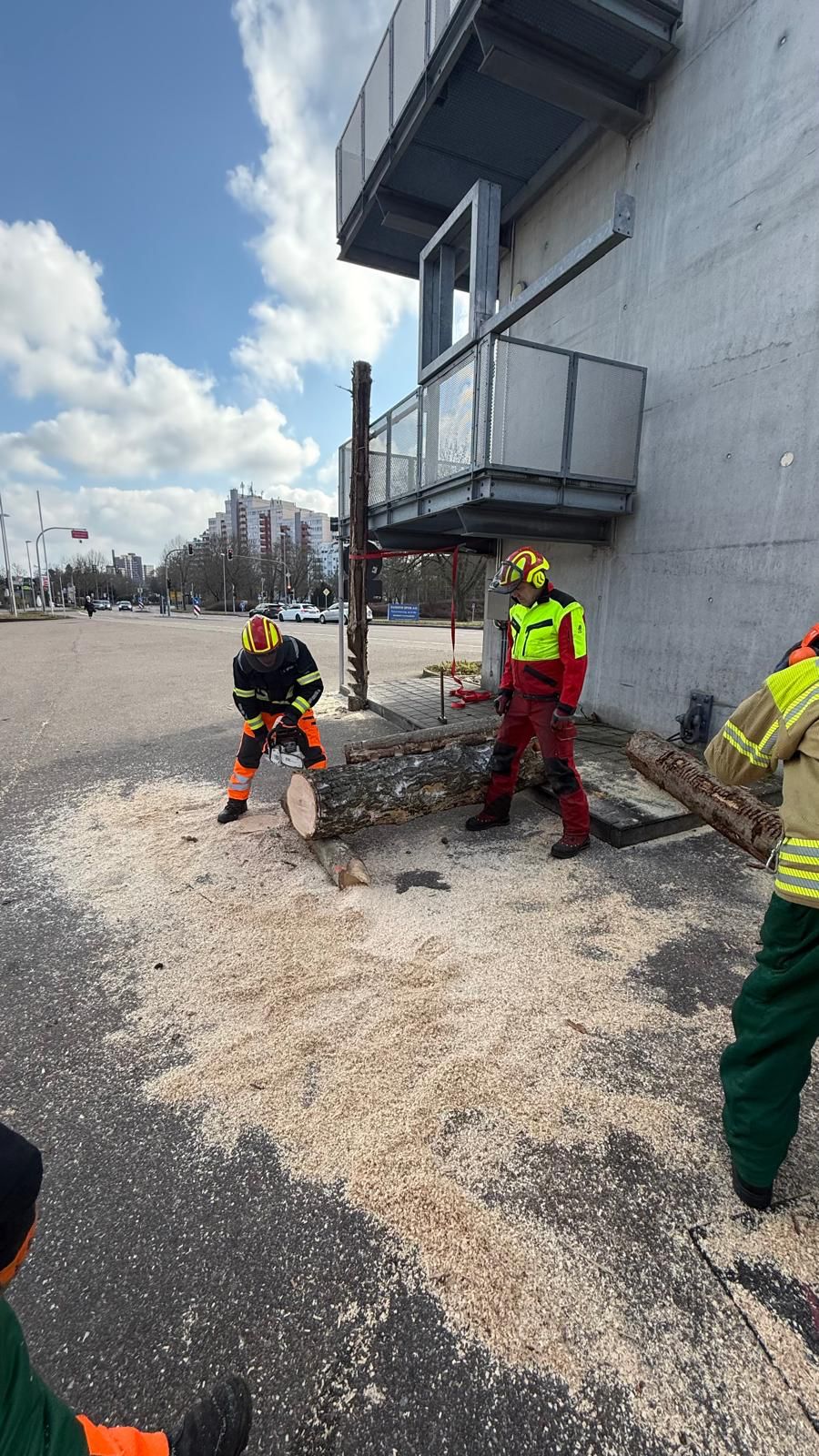 Die praktische Ausbildung bestand aus dem sicheren Starten und Bedienen der Motorsäge, dem Sägen von Bäumen sowie dem Erkennen und Vermeiden von Gefahrenquellen.