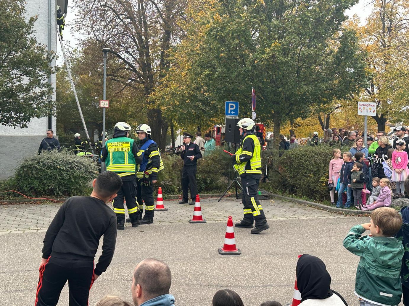 Am Samstag, den 19. Oktober 2024, fand der Nachholtermin der großen Schauübung der Feuerwehr Asperg statt, die in der Woche zuvor aufgrund eines Großbrandes leider nicht stattfinden konnte. Austragungsort war das Jugendhaus Kindergarten Schubartschule, wo ein realistisches Szenario eines Kellerbrands simuliert wurde. Mehrere Hundert Besucher sowie prominente Vertreter der Stadt, wie Bürgermeister Christian Eiberger und einige Gemeinderäte, verfolgten die Übung aufmerksam.