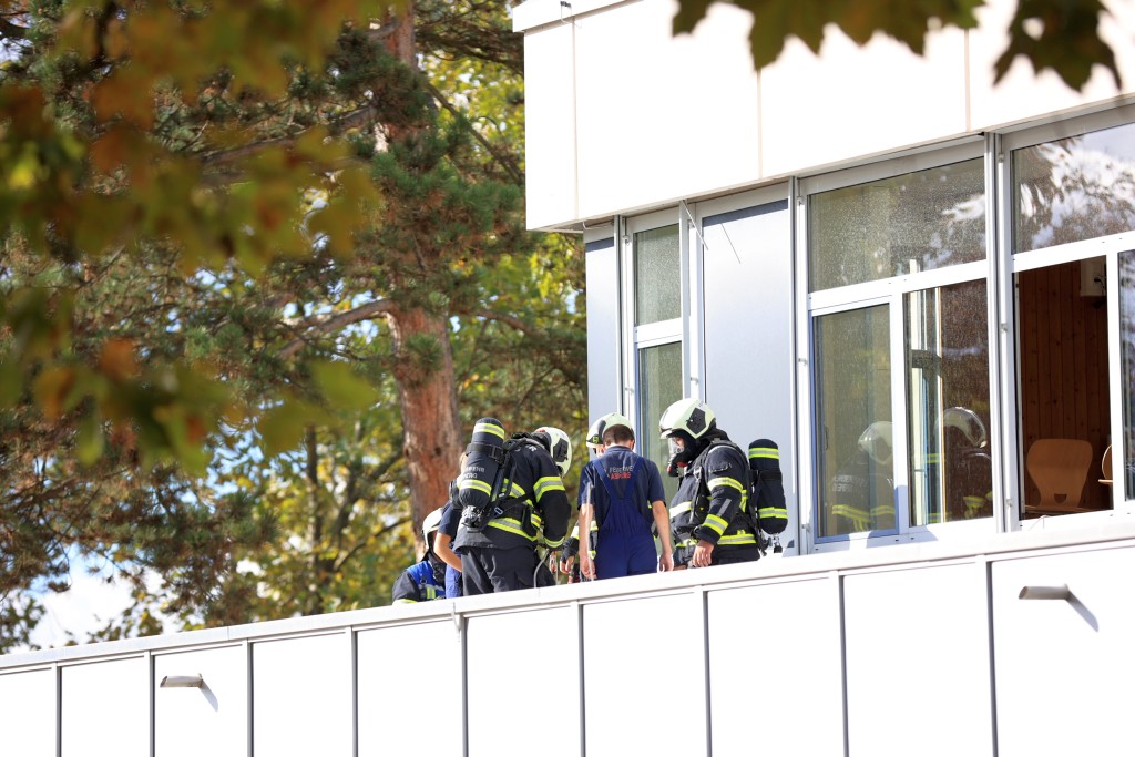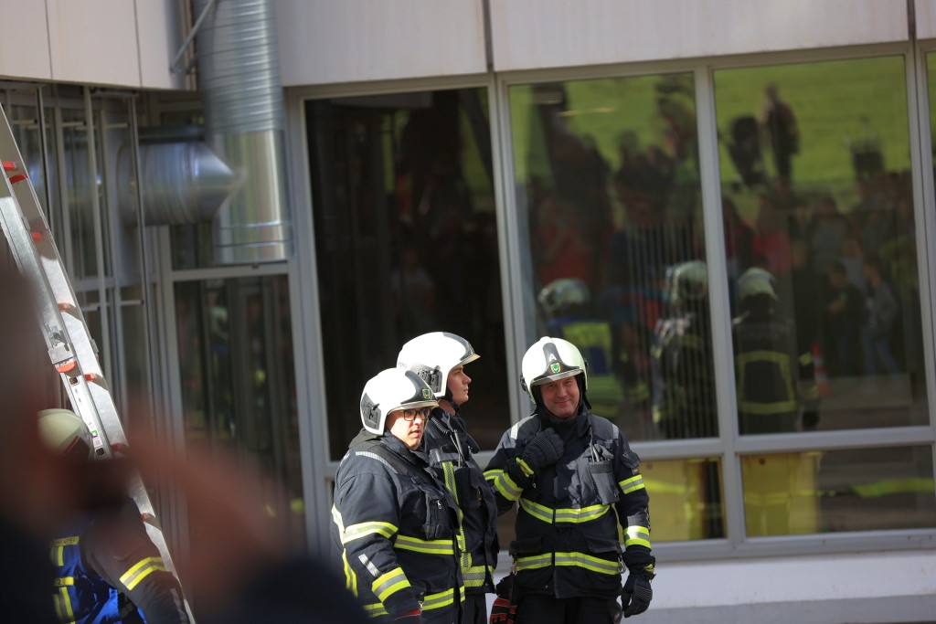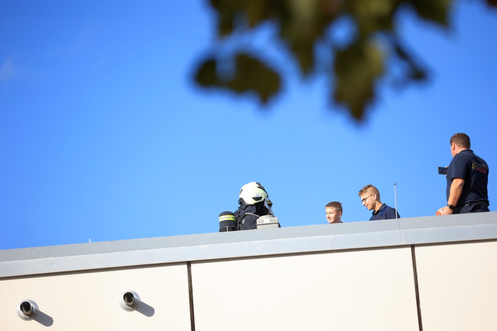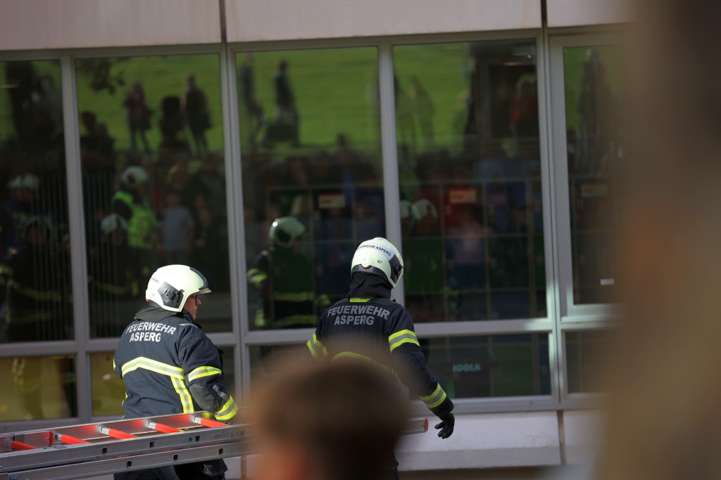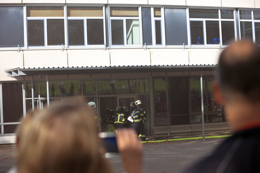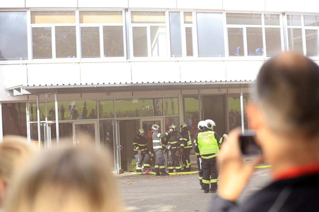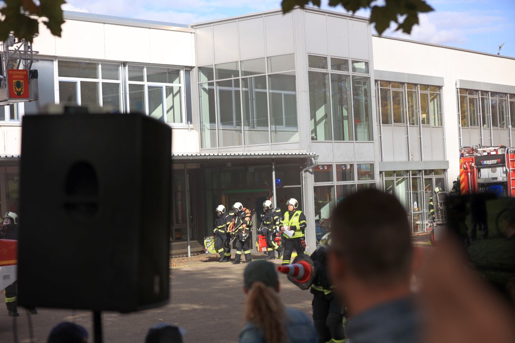 Simuliert wurde ein Dachbrand in einer Schule, der durch Arbeiten mit einem Gasbrenner ausgelöst wurde. Das brennende Dach schnitt den Arbeitern auf dem Dach den Fluchtweg ab, weshalb sich diese zur Rettung auf dem Dach bemerkbar machten. In einem Klassenzimmer waren zudem zwei Schüler verblieben, die an einem Fenster signalisierten, dass sie Hilfe benötigen. Weitere Schüler konnten sich auf ein Vordach retten.