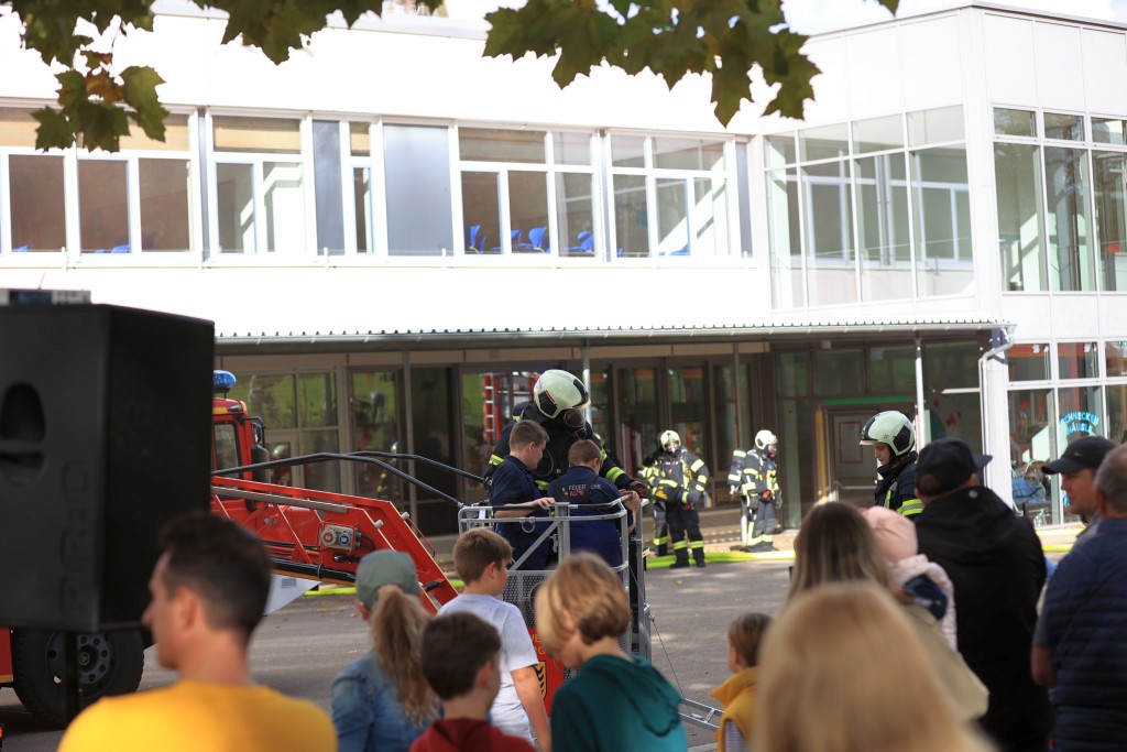 Nach Ende der Übung konnten sich alle Zuschauerinnen und Zuschauer ein Bild von der Feuerwehr machen, indem sie in die Fahrzeuge sitzen und alle Ausrüstungsgegenstände bestaunen konnten.