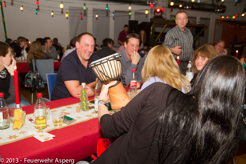 Der vermeintliche Höhepunkt des Abends war das gemeinsame Schrottwichteln, in dem die Teilnehmer allerlei Geschenke mitbringen konnten. Von Werkzeugkoffern bis Afrikanische Trommeln war fast alles dabei und hat so einen neuen Besitzer gefunden. Direkt nach dem Schrottwichteln gab es dann eine Besonderheit. Es wurde ein kleiner und selbstgedrehter Film über die Feuerwehr Asperg gezeigt und dahinter versteckte sich allerdings ein Heiratsantrag eines Kameraden an seine Freundin. Unter großem Aplaus stellte er die alles entscheidende Frage: "Willst Du mich heiraten", welche selbstverständlich auch mit "Ja" beantwortet wurde. Wir wünschen den beiden alles gute für die weitere Zukunft.