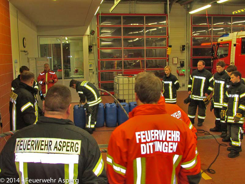 Aufgrund der gemeinsamen Aufgaben im Einsatz war es naheliegend, sich für diese Zusammenarbeit auch gemeinsam vorzubereiten. Als Abteilungskommandant der Ditzinger Mannschaft vereinbarte Andreas Häcker daher mit Ingo Ade, dem Leiter des Gefahrstoffzuges Asperg, dass sich im Jahr 2014 die Angehörigen beider Wehren für Übungsabende treffen. Drei Termine legten sie dafür im neuen Übungsplan gleich fest.