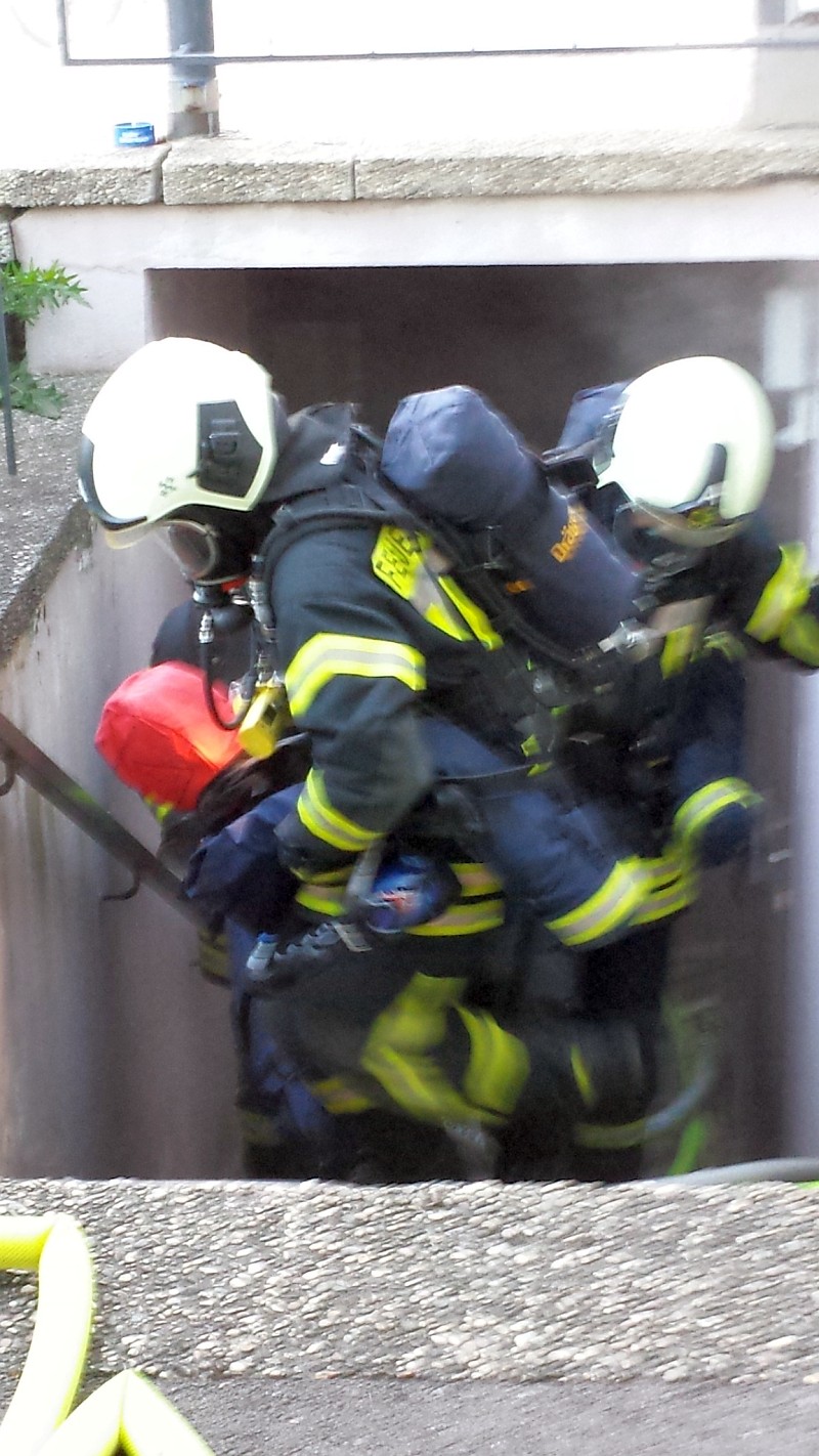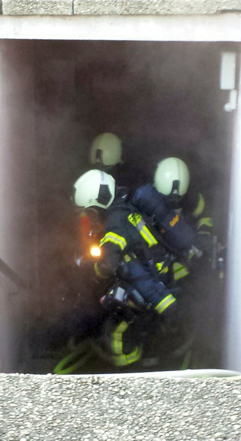 Das Übungsszenario sah einen Brand in der untenliegenden Einliegerwohnung vor, in der noch zwei Personen vermisst wurden.