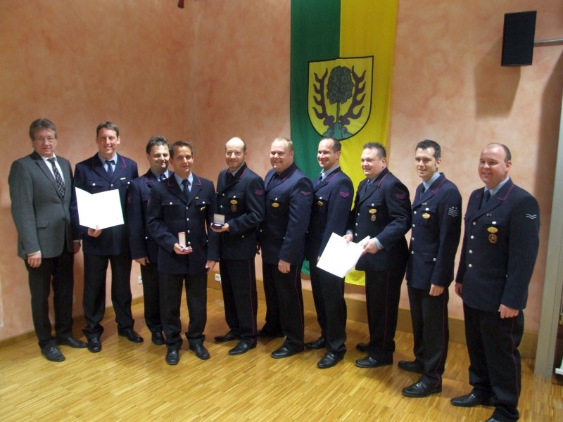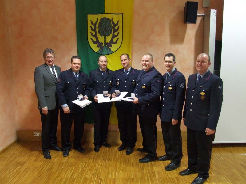 Im letzten Jahr gab es wieder eine Gruppe, die sich neben dem aktiven Einsatzdienst auch um das Deutsche Sportabzeichen in den Kategorien Silber und Gold verdient gemacht haben - mit Erfolg! Fritz Loimayr ehrte folgende Kameraden: