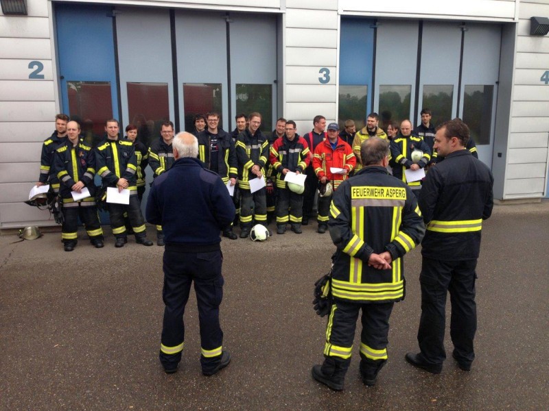 Mit einer öffentlichen Abschlussübung wurde am Samstag, den 2. Mai 2015, der Lehrgang „Maschinist für Löschfahrzeuge“ auf dem Übungshof der Feuerwehr Marbach am Neckar erfolgreich beendet.