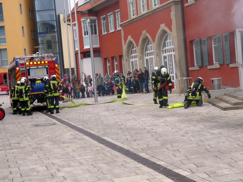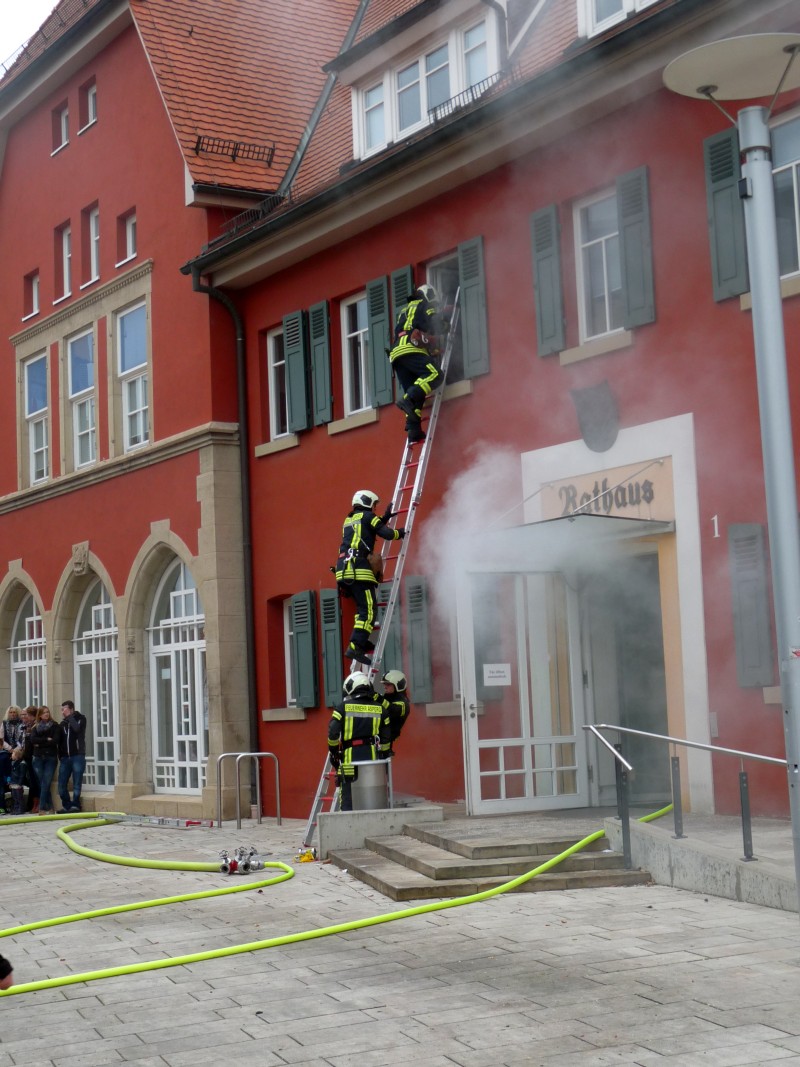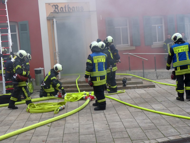 Rund 400 Zuschauer waren am vergangenen Wochenende dabei, als die Feuerwehr Asperg ihre alljährliche große Schauübung für die Bevölkerung am Rathaus abhielt.