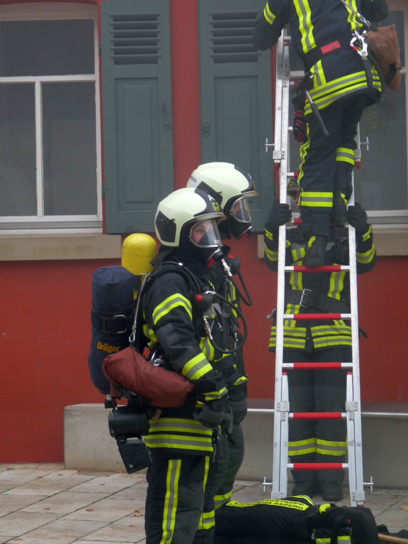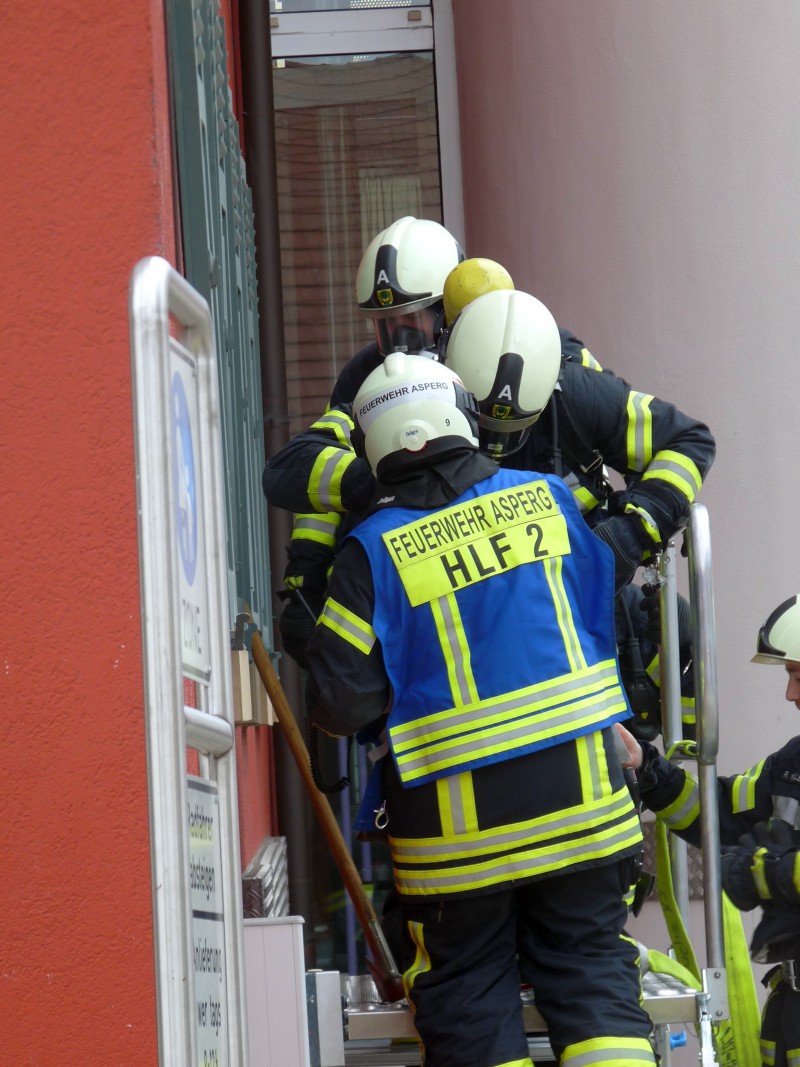 Nach Erkundung durch den Einsatzleiter wurde umgehend die Menschenrettung über die mitalarmierte Drehleiter der Feuerwehr Ludwigsburg, sowie über tragbare Leitern der Feuerwehr Asperg eingeleitet. Die im Gebäude vom Rauch eingeschlossenen Personen konnten rasch durch die Einsatzkräfte der Feuerwehr gerettet werden. Parallel führte ein massiver Löschangriff im Inneren des Gebäudes zu dem gewünschten Erfolg. Hier kamen mehrere Trupps unter schwerem Atemschutz mit mehreren C-Rohren zum Einsatz. Abschließend wurde das Gebäude mittels Hochdrucklüfter entraucht. Die Übung war ein voller Erfolg.