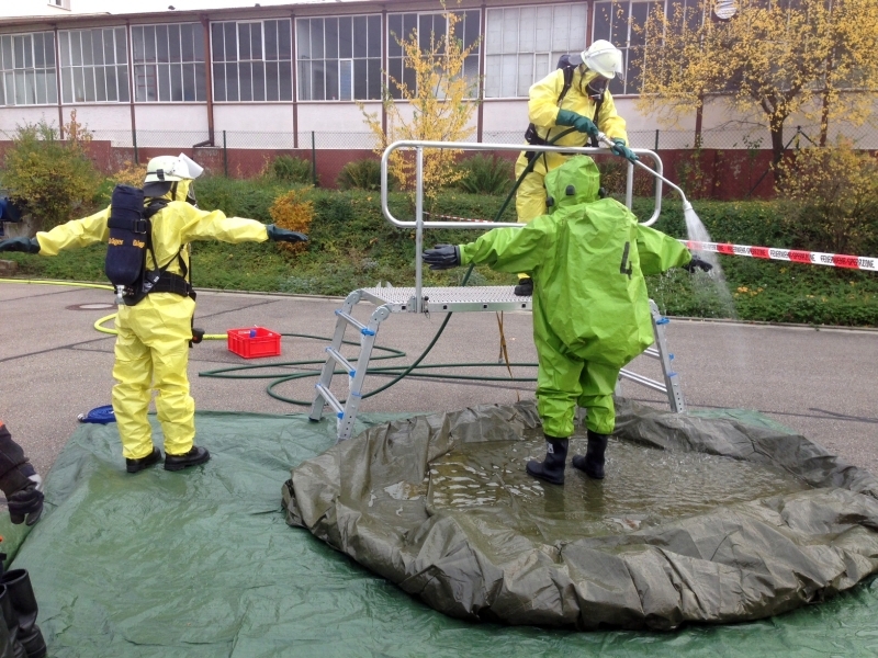Beim GG-2 Lehrgang liegt der Schwerpunkt im Bereich des richtigen An- und Ausziehen von Chemikalienvollschutzanzügen (CSA).