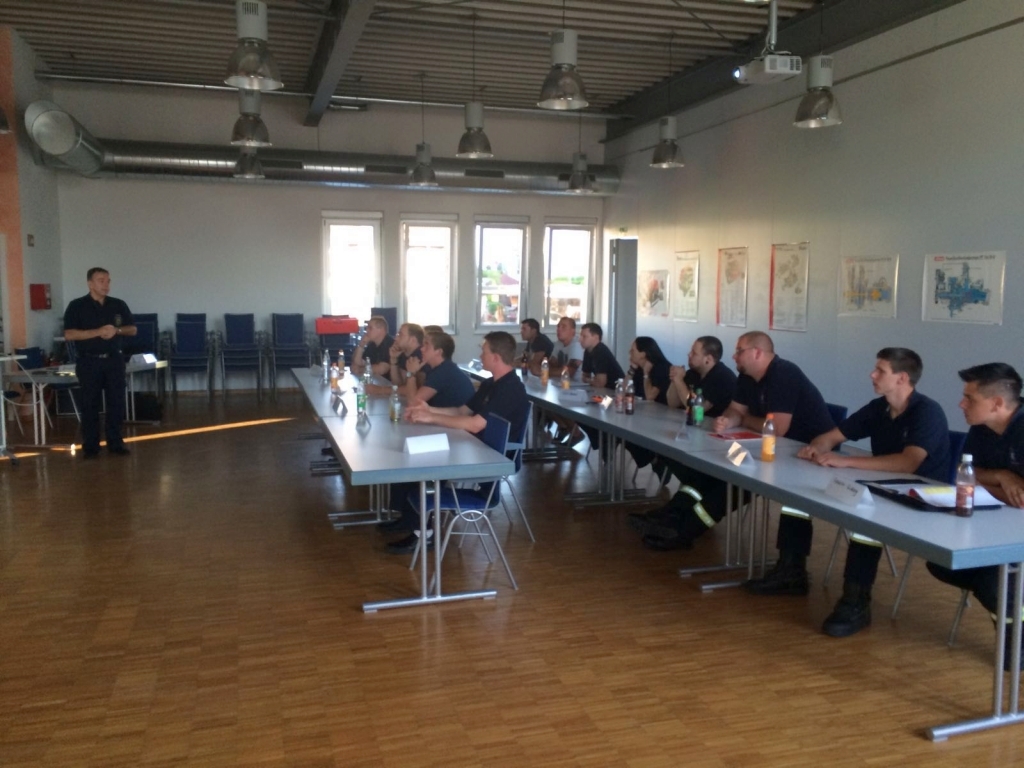 Hoch motiviert folgten die Kameraden bei den theoretischen Unterrichtseinheiten ihren Ausbildern. Technische und physikalische Grundlagen zum Einsatz der Pumpe und kraftbetriebenen Geräten, Rechtsgrundlagen, Unfallverhütung, Fahrzeugkunde, Straßenverkehrsrecht und vieles mehr wurden gelehrt.