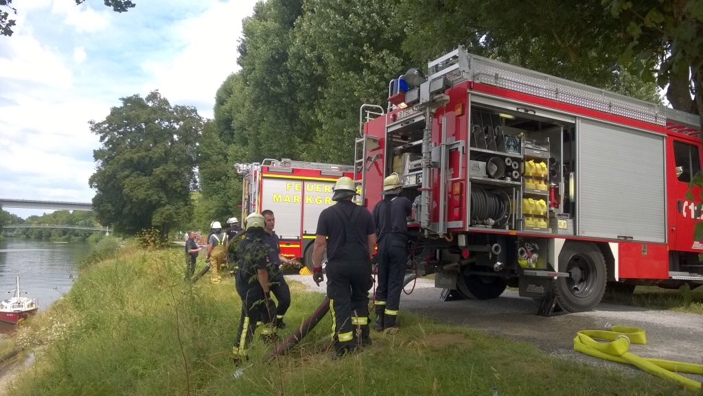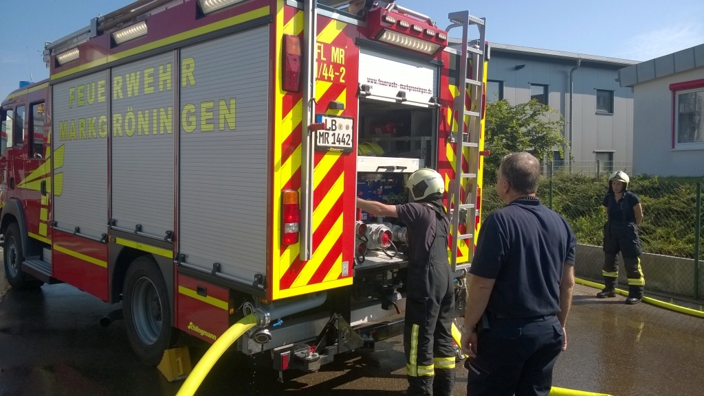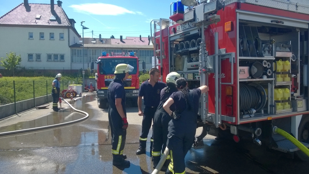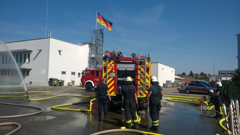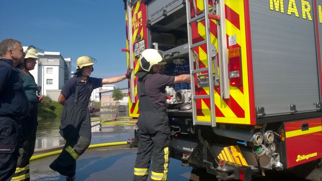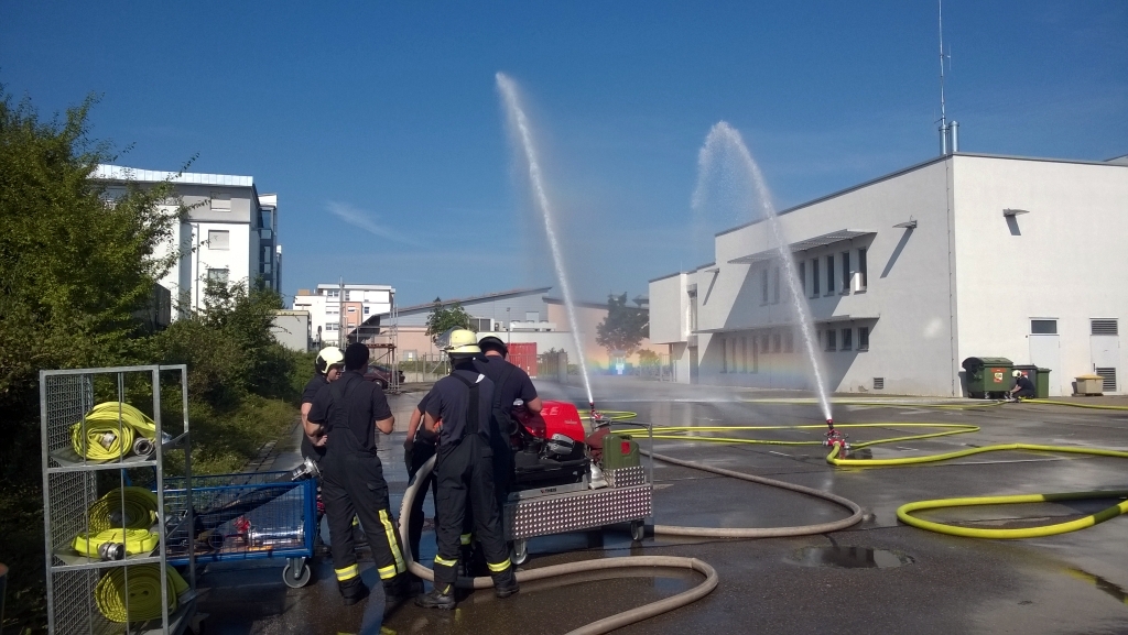 Der Praxis, dem Umgang mit Pumpen und Aggregaten, war im Lehrgang der größte Teil eingeräumt, bei sommerlichen Temperaturen wurden die unterschiedlichsten Einsatzszenarien auf dem Feuerwehrhof in Asperg geübt. Der Lehrgangsinhalt „Wasserentnahme aus offenen Gewässern“ fand unter Beobachtung von vielen neugierigen Zuschauern, am Neckar in Marbach, statt.