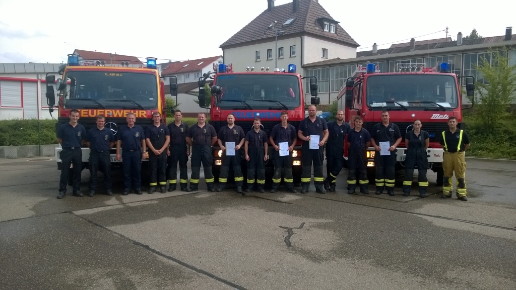 Der Lehrgang endete mit einer schriftlichen und praktischen Prüfung, die alle Teilnehmer mit Bravur bestanden. Lehrgangsbester wurde Marcel Cansino von der Freiwilligen Feuerwehr Schwieberdingen.