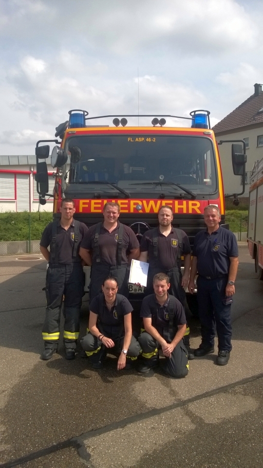 Für die Asperger Wehr konnten insgesamt fünf neue Maschinisten, namentlich Roman Biskup, Tanja Kaminski, die erste Maschinistin in Asperg, Marco Räuchle, Markus Scholz und Michael Wolf ausgebildet werden.