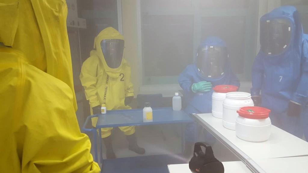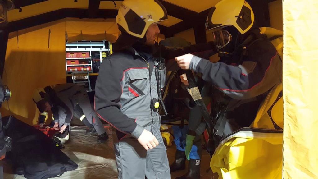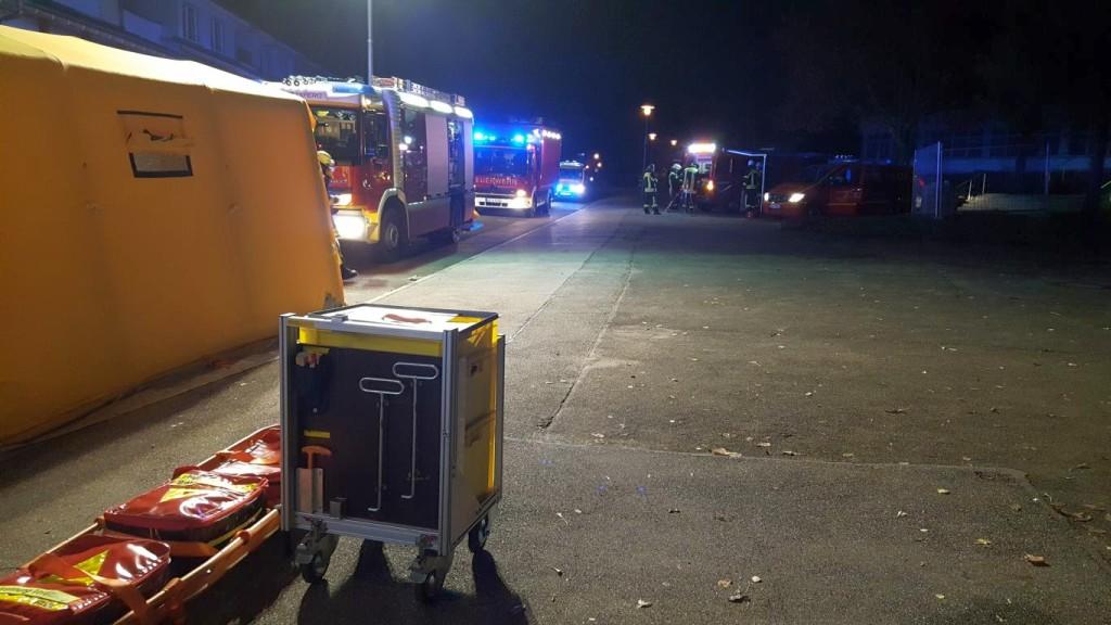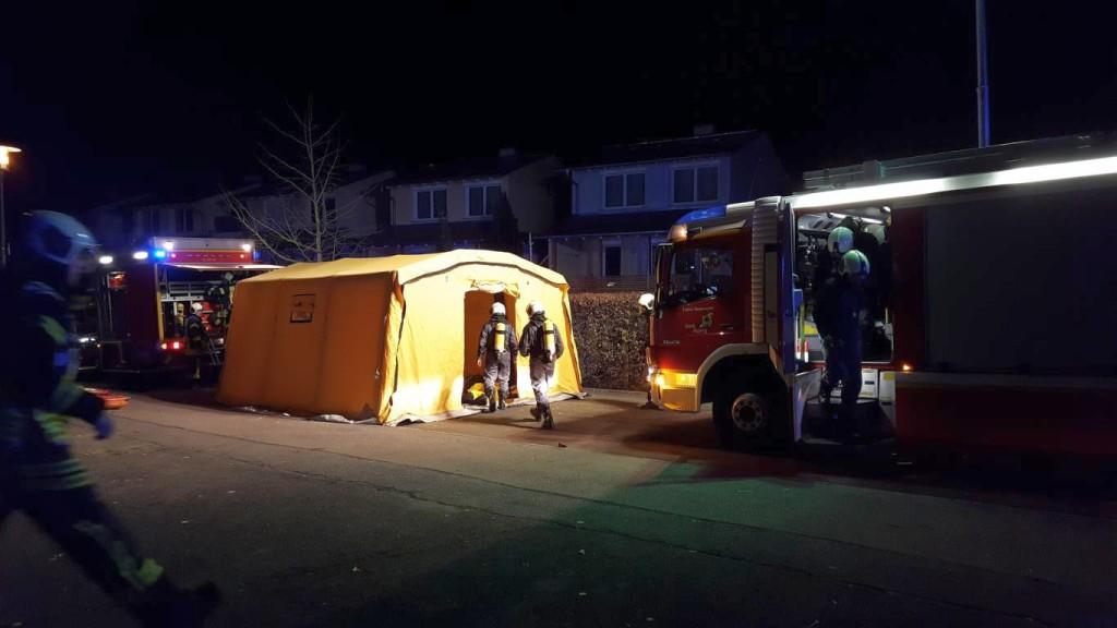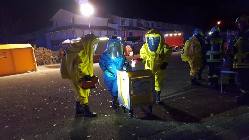 In desen Folge mussten drei Personen durch die Feuerwehr aus dem betroffenen Bereich gerettet werden. Anschließend beseitigten Einsatzkräfte des Asperger Gefahrstoffzugs in schweren Chemikalienvollschutzanzügen die „ausgetretenen“ Gefahrstoffe.
