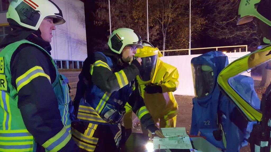 Bei einer gemeinsamen Übung der Feuerwehren Asperg, Möglingen und Tamm übten die Feuerwehren die Zusammenarbeit im Gefahrstoffeinsatz.