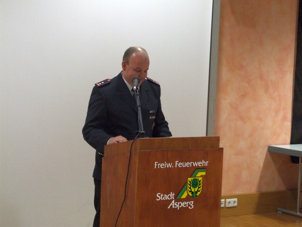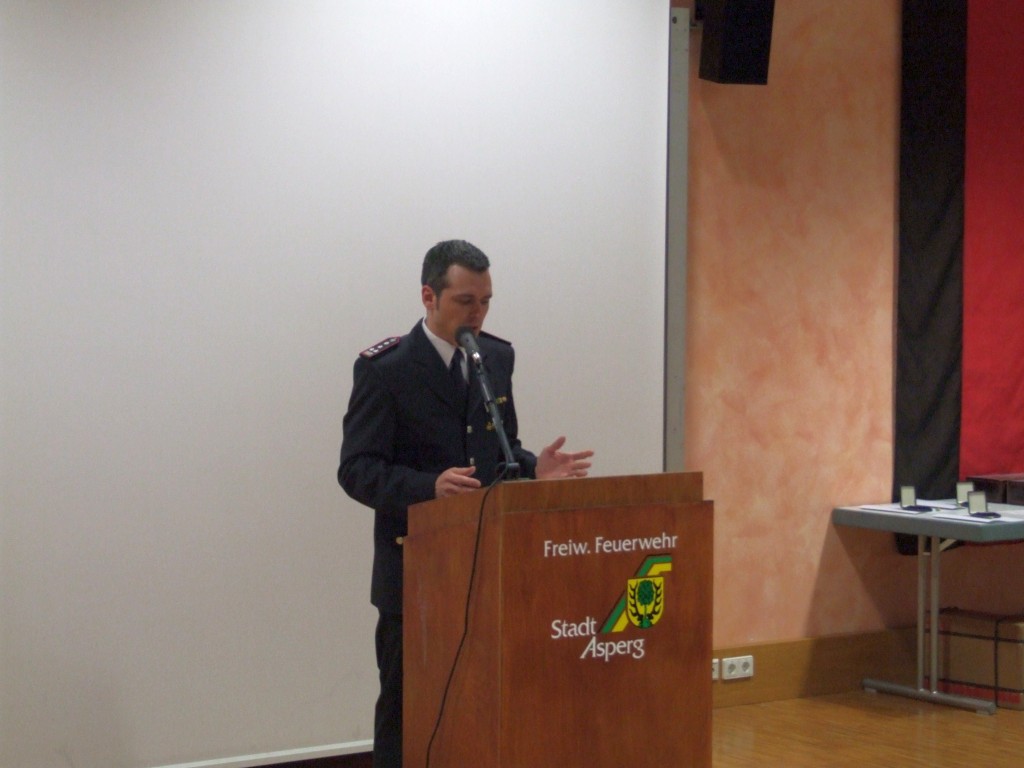 Im Anschluss an den Rückblick des Kommandanten folgte der Bericht des stellvertretenden Kommandanten und Ausbildungsleiters Michael Dahm. Er berichtete über die zahlreich absolvierten Fortbildungslehrgänge der einzelnen Feuerwehrleute und über 3604 Gesamtübungsstunden, die die 80 aktiven Feuerwehrleute in Asperg vergangenes Jahr geleistet hatten. Auch über die durch Asperger Feuerwehrleute besuchten Ausbildungslehrgänge auf Kreis- und Landesebene erstattete Michael Dahm Bericht.