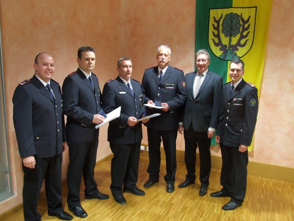 Drei Feuerwehrleute wurden an diesem Abend für ihre Mitgliedschaft in der Einsatzabteilung der Freiwilligen Feuerwehr Asperg von Bürgermeister Ulrich Storer ausgezeichnet. Die Feuerwehrverdienstmedaille in Silber für 30 Jahre aktiven Dienst erhielten Lutz Walker, Thomas Lohmiller und Michael Cerullo.