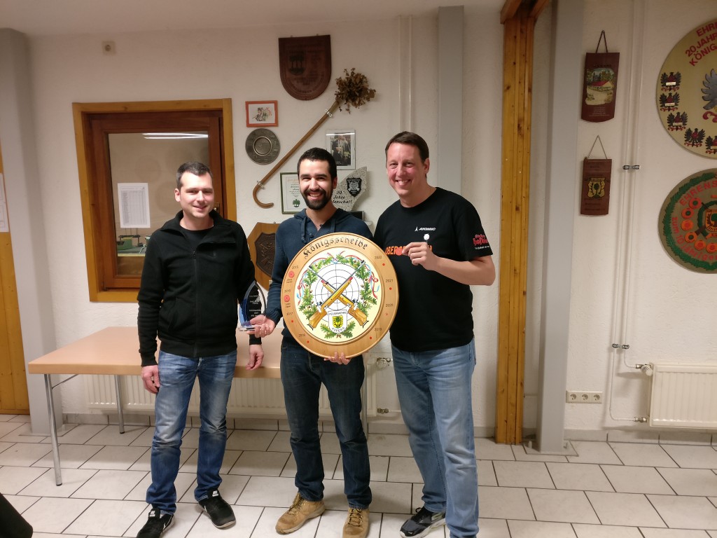 Beim zweiten Vergleich des Tages, dem Königsschießen, galt es den präzisesten Schuss in die Mitte einer Luftgewehrscheibe zu setzen. Bei dieser wahrlichen „Königsdisziplin“ hat jeder Teilnehmer lediglich drei Luftgewehrscheiben, auf die jeweils bloß einmal geschossen werden darf. Der präziseste Schuss gelang dieses Jahr Alex Duarte, dem Sieger des letztjährigen Preisschießen. Er schoss einen „Zehner“ und darf sich somit ein Jahr lang Schützenkönig der Feuerwehr Asperg nennen.