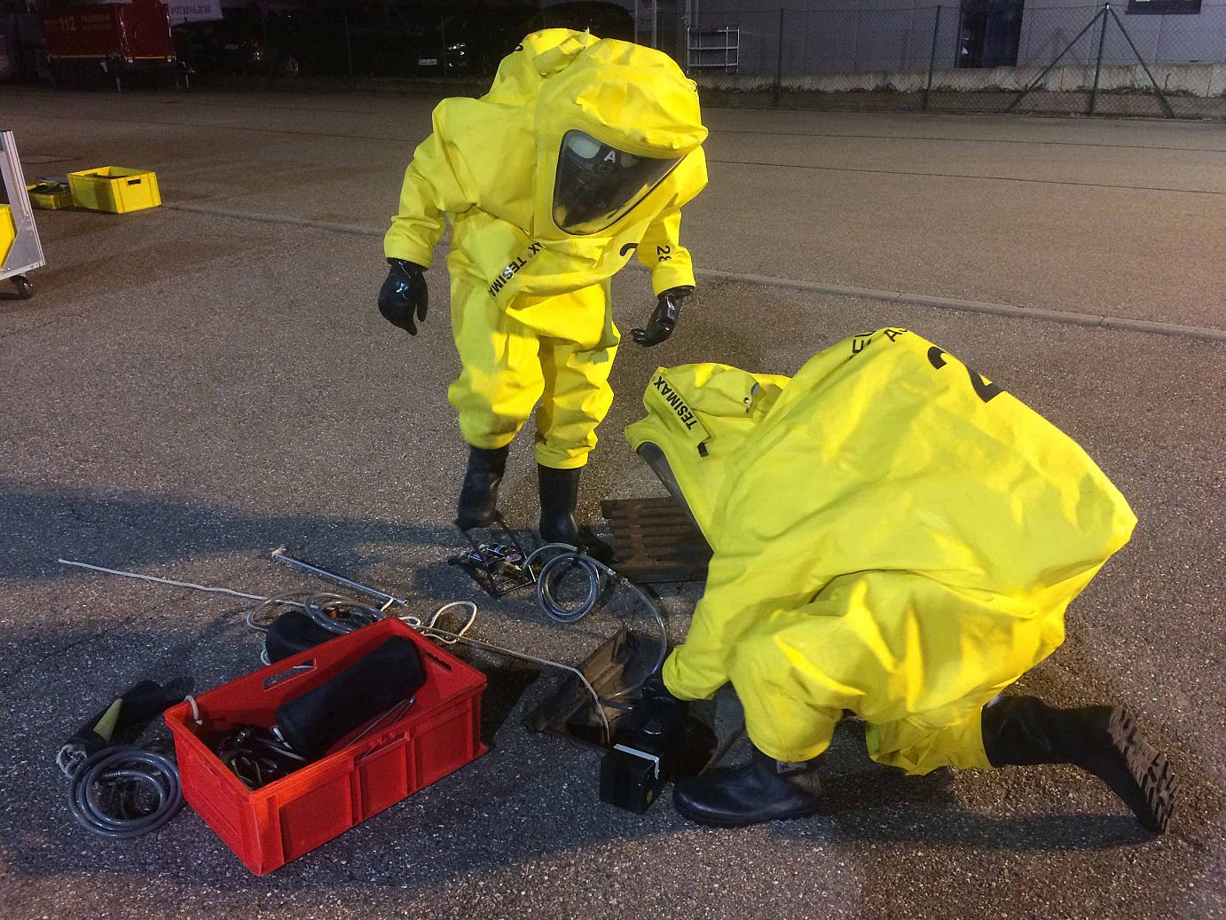 Eine Gefahrstoffübung absolvierten der Gefahrstoffzug des Landkreises Ludwigsburg am 13. März 2017.