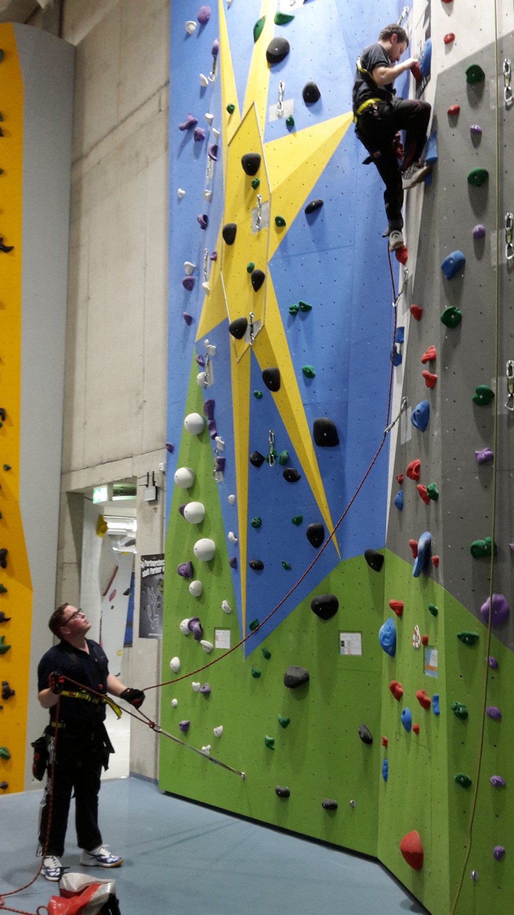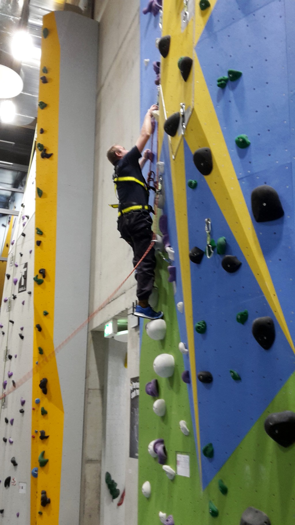 Um den Umgang mit den verschiedenen Klettertechniken (Toprope und Vorstieg), sowie den Aufbau und Betrieb eines Sicherungsstandes und den Umgang mit dem eigenen Material zu üben, wurde am Dienstag, den 07. März eine Übungseinheit in der neu eröffneten Kletterhalle „Griffwerk“ in Ludwigsburg eingelegt, bevor für die Gruppe die Freiluft-Übungsssaison beginnt.