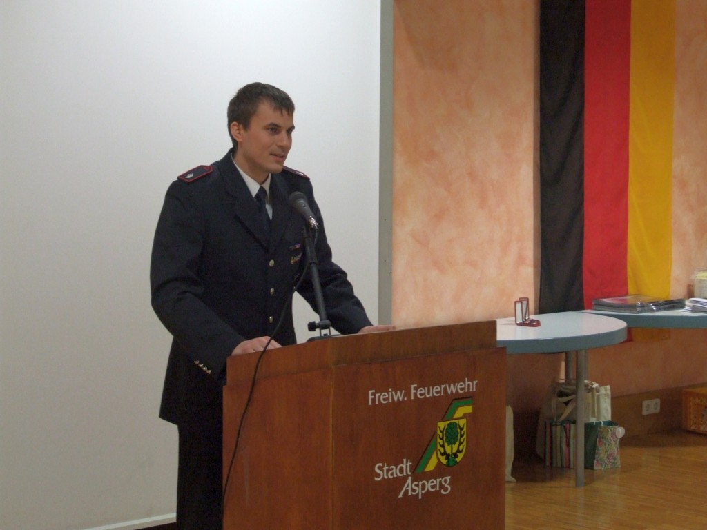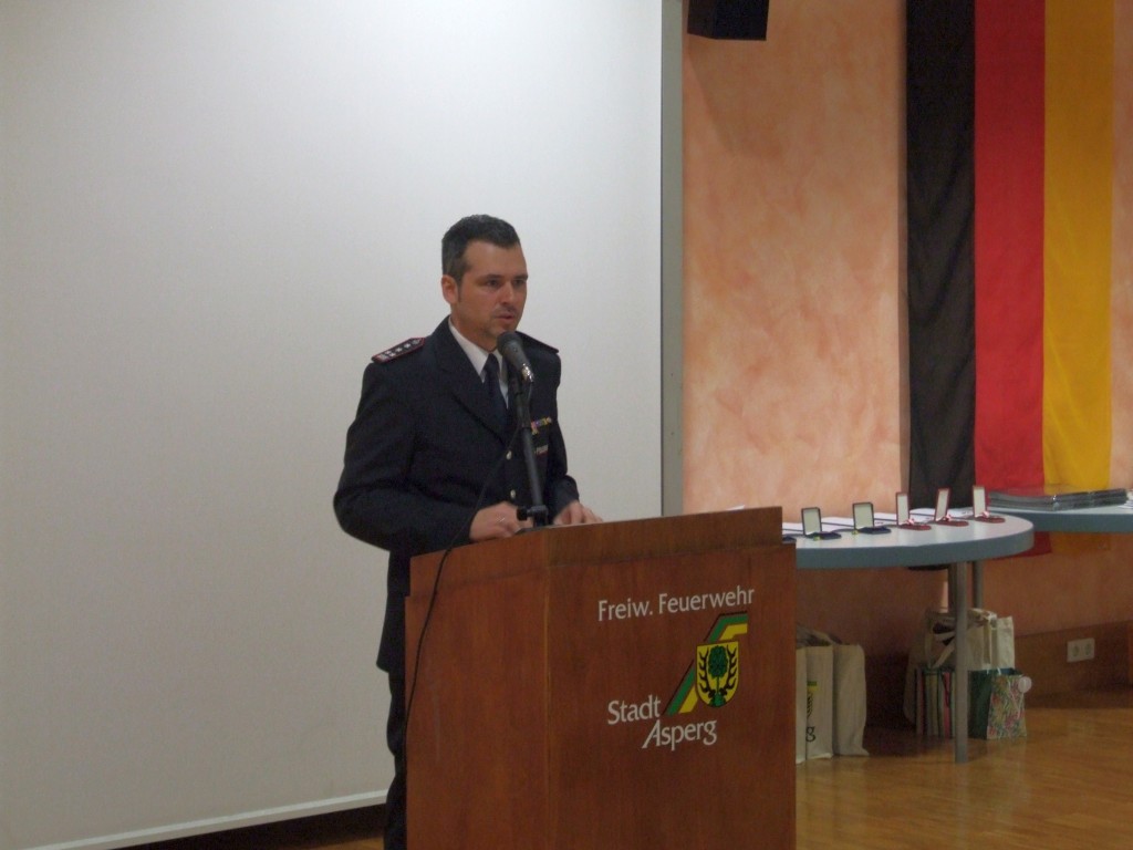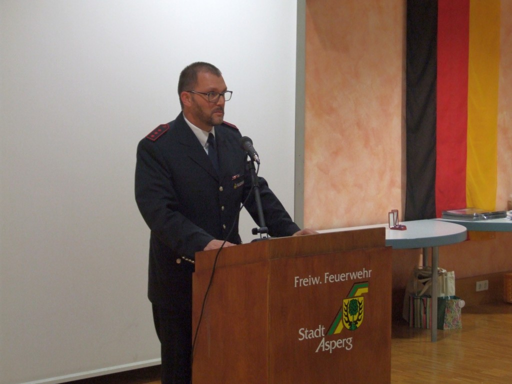 Im Anschluss an den Rückblick des Kommandanten folgte der Bericht des stellvertretenden Kommandanten und Ausbildungsleiters Michael Dahm. Er berichtete über die zahlreich absolvierten Fortbildungslehrgänge der einzelnen Feuerwehrleute mit über 4719 Gesamtübungsstunden, die die 83 aktiven Feuerwehrleute in Asperg vergangenes Jahr geleistet hatten. Auch über die durch Asperger Feuerwehrleute besuchten Ausbildungslehrgänge auf Kreis- und Landesebene erstattete Michael Dahm Bericht.