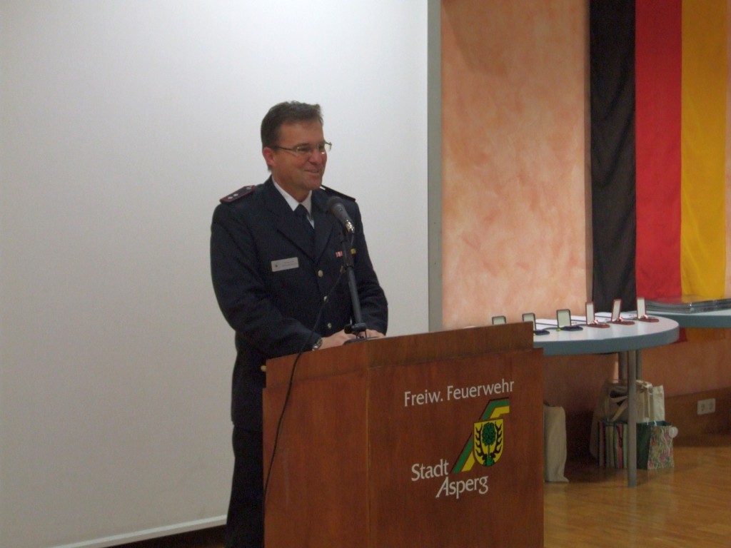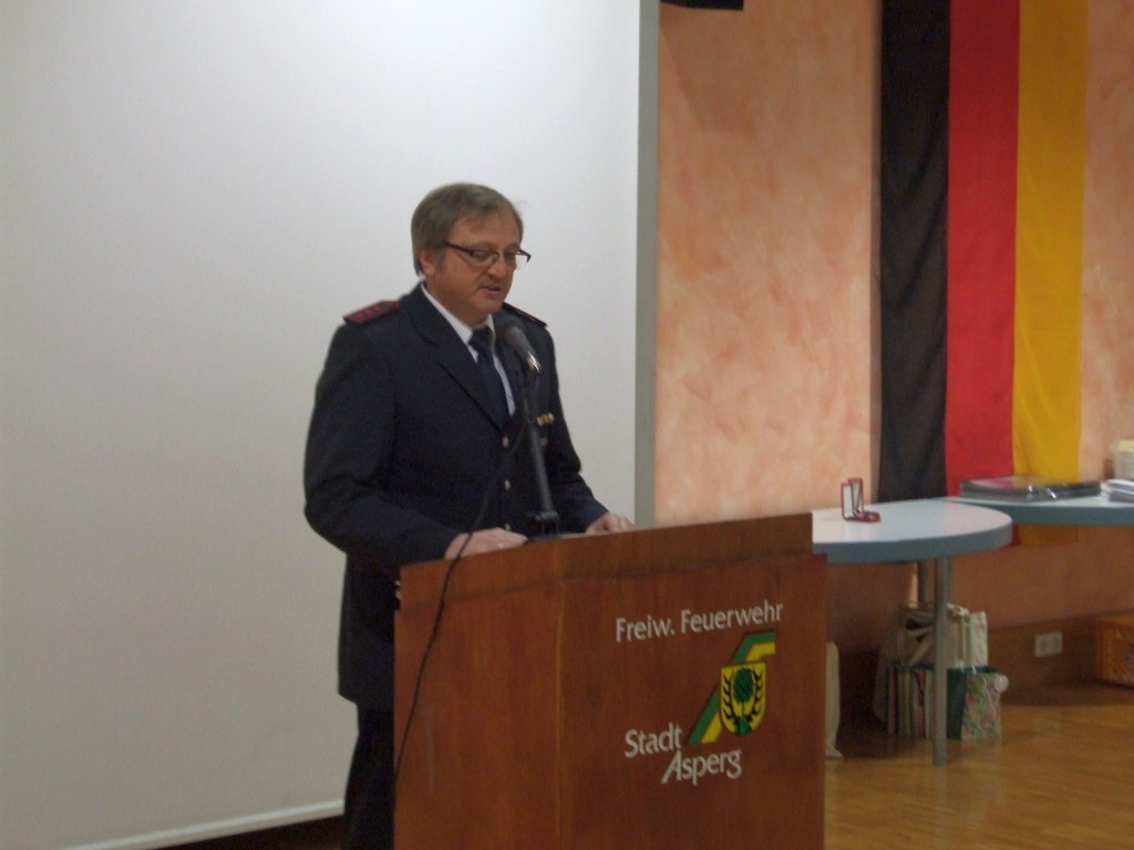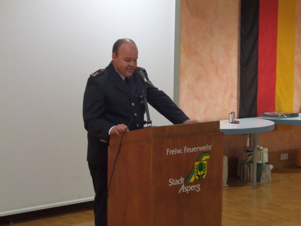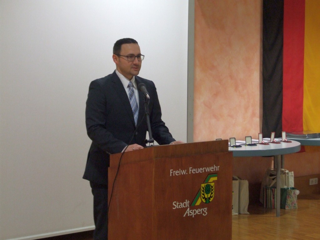 Am Samstag, den 13. Januar 2018 fand die Hauptversammlung der Feuerwehr Asperg statt. Kommandant Stefan Fritz konnte unter den Anwesenden, zum ersten Mal den neuen Bürgermeister Christian Eiberger, den Leiter des Haupt- und Ordnungsamtes Volker Gramlich, Mitglieder des Gemeinderats, weitere Vertreter der Stadtverwaltung, Kreisbrandmeister Andy Dorroch, den stellvertretenden Kreisfeuerwehrverbandsvorsitzenden Markus Giek, die Kommandanten der Feuerwehren aus dem Bezirk 3 und den Polizeiposten Asperg begrüßen.