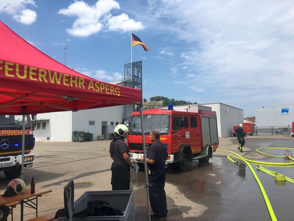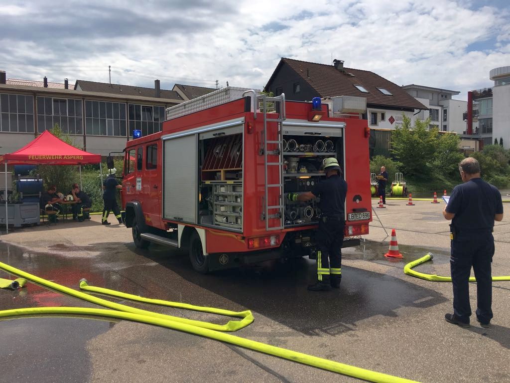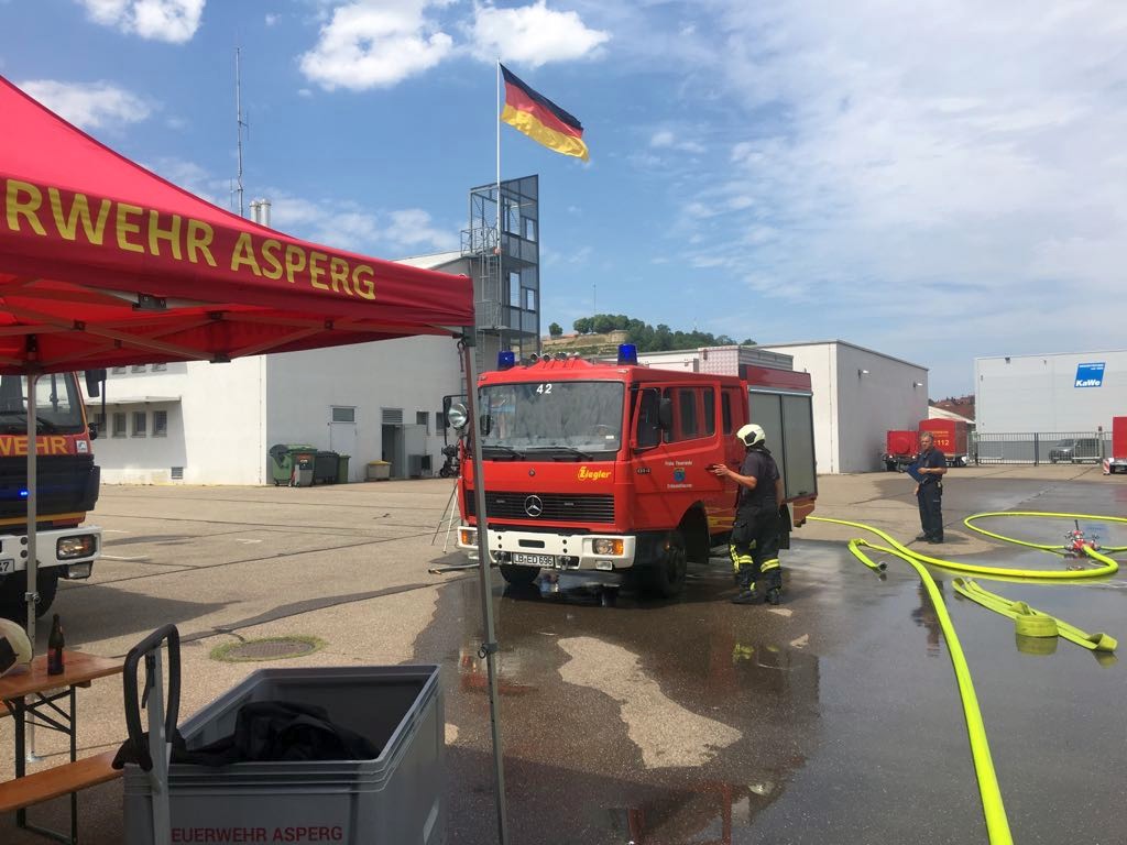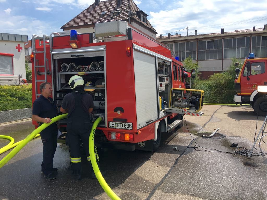 Der Praxis, dem Umgang mit Pumpen und Aggregaten, war im Lehrgang der größte Teil eingeräumt, bei sommerlichen Temperaturen wurden die unterschiedlichsten Einsatzszenarien auf dem Feuerwehrhof in Asperg geübt.