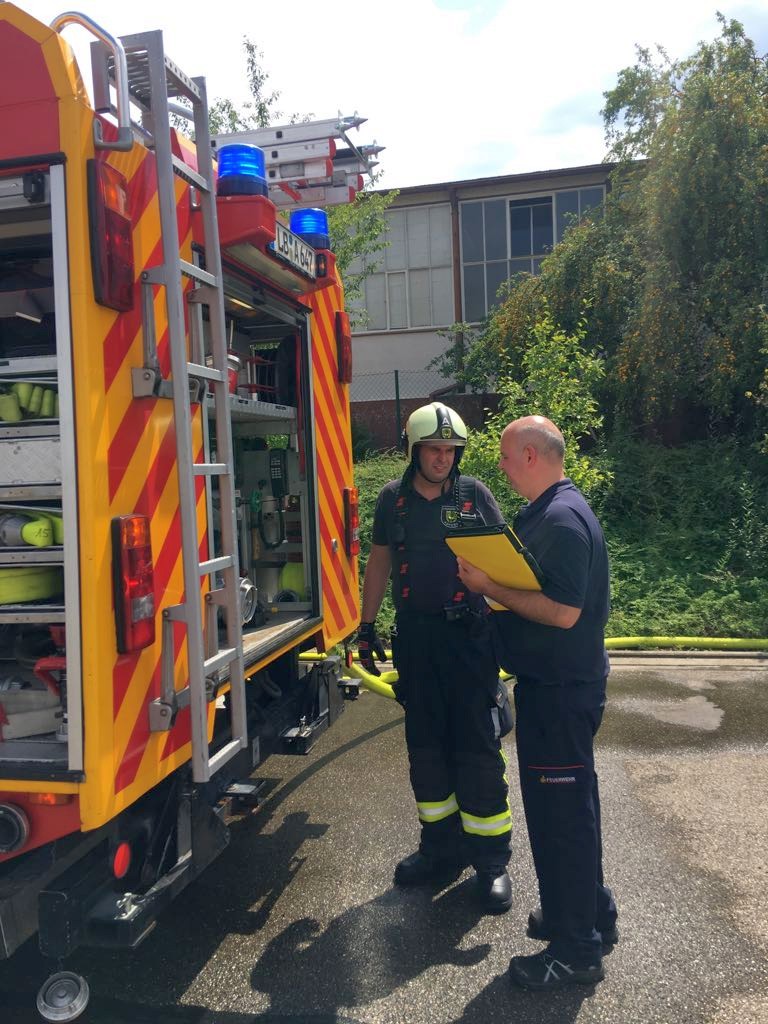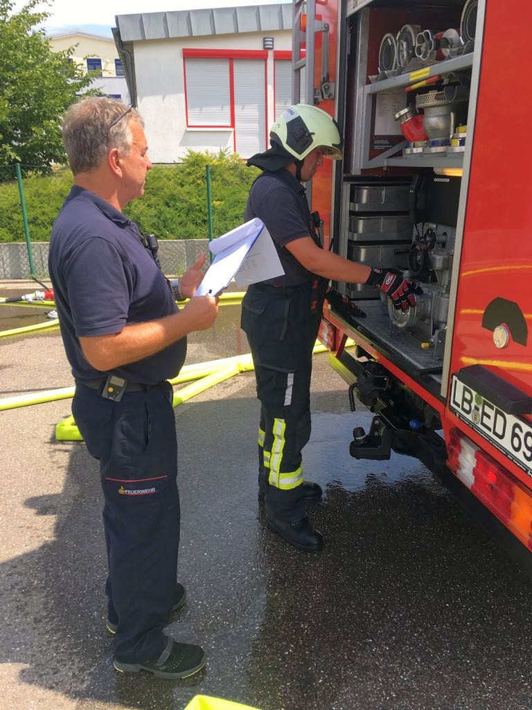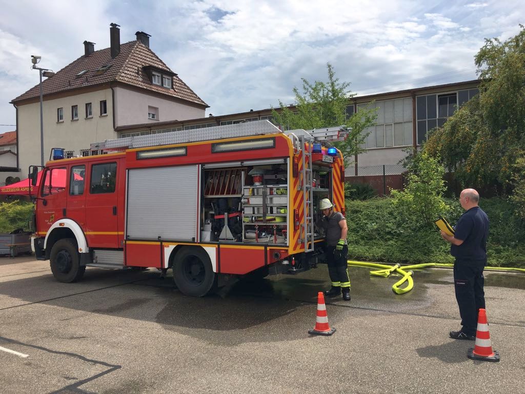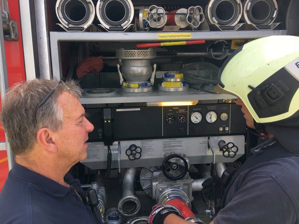 Der Praxis, dem Umgang mit Pumpen und Aggregaten, war im Lehrgang der größte Teil eingeräumt, bei sommerlichen Temperaturen wurden die unterschiedlichsten Einsatzszenarien auf dem Feuerwehrhof in Asperg geübt.
