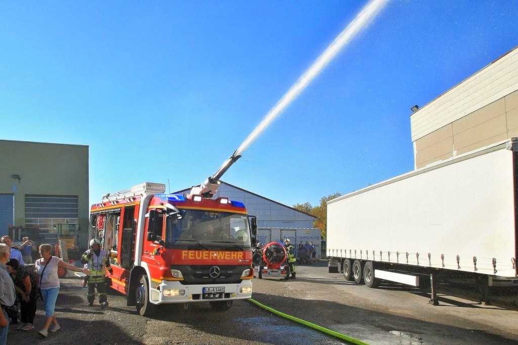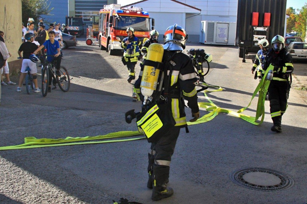 Bei einer großen Schauübung an der leerstehenden Fabrikhalle in der Markgröninger Straße nahmen in diesem Jahr auch französische Feuerwehrleute aus der Partnerstadt Lure in Frankreich teil.