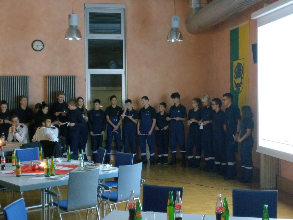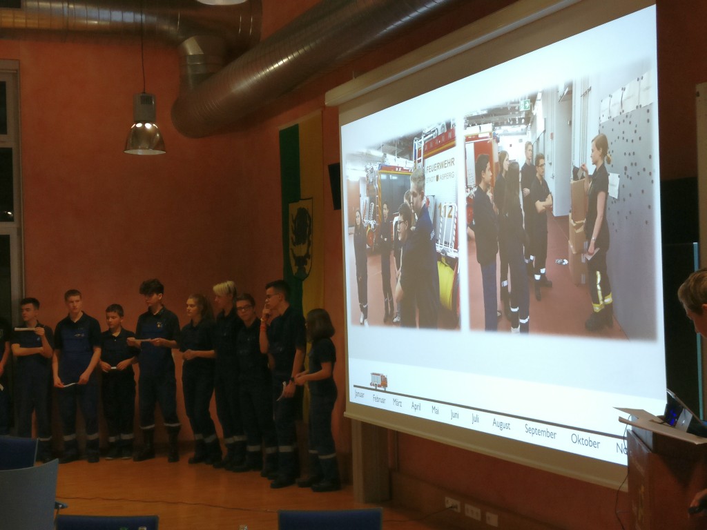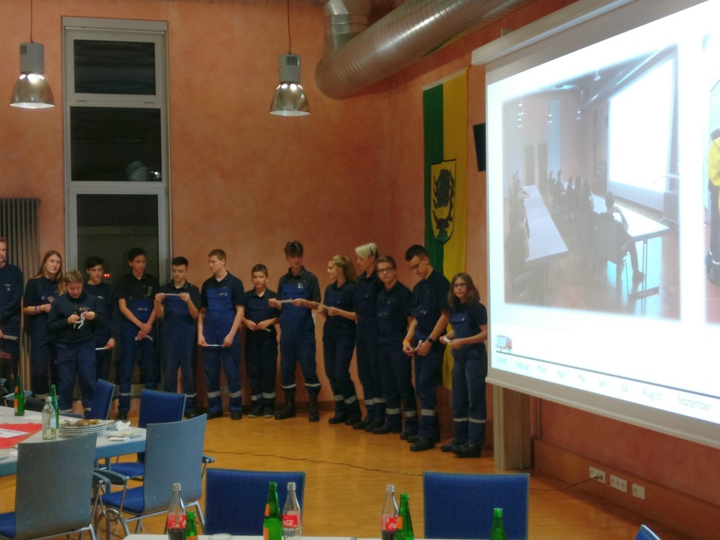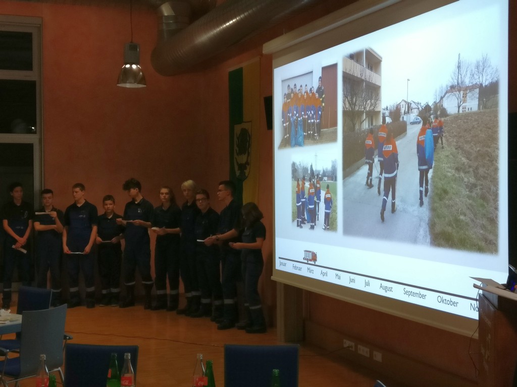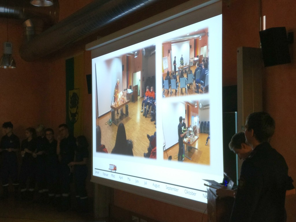 Nach den Grußworten des Kommandanten Stefan Fritz, des Bürgermeisters Christian Eiberger und einem gemeinsamen Weihnachtsessen, zeigte die Jugendfeuerwehr in ihrem traditionellen Jahresrückblick was sie das ganze Jahr über geleistet und erlebt hat.
